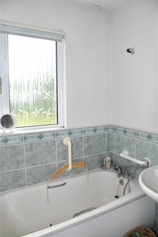 4-piece white suite comprising LFWC, WHB, panelled bath with shower head and shower to enclosed corner cubicle. Splash back tiling.