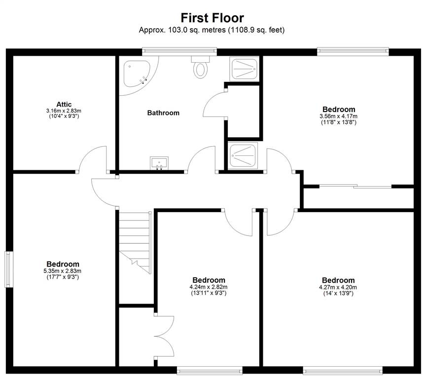 BEDROOM (4): 17' 7" X 9' 3" (5.35m X 2.83m)
