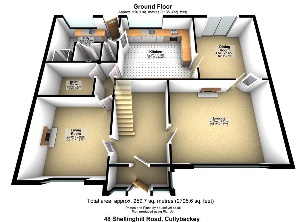 With balustrade staircase leading to first floor. Coving to ceiling. Ceiling Rose.