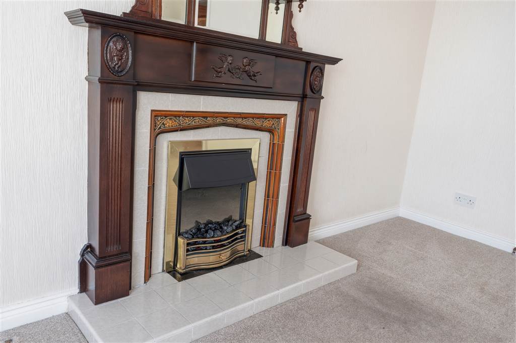 With fireplace to tiled hearth, wooden surround and mantel. Ceiling Rose. Coving to ceiling. Door to rear hall.