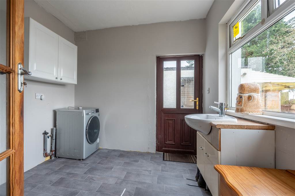 With fitted units, sink unit with stainless-steel mixer tap. Plumbed for washing machine. Space for tumble dryer. PVC door to rear.
