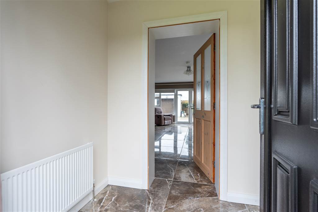 With PVC front door with glazed side panes. Tiled flooring. Door to lounge.
