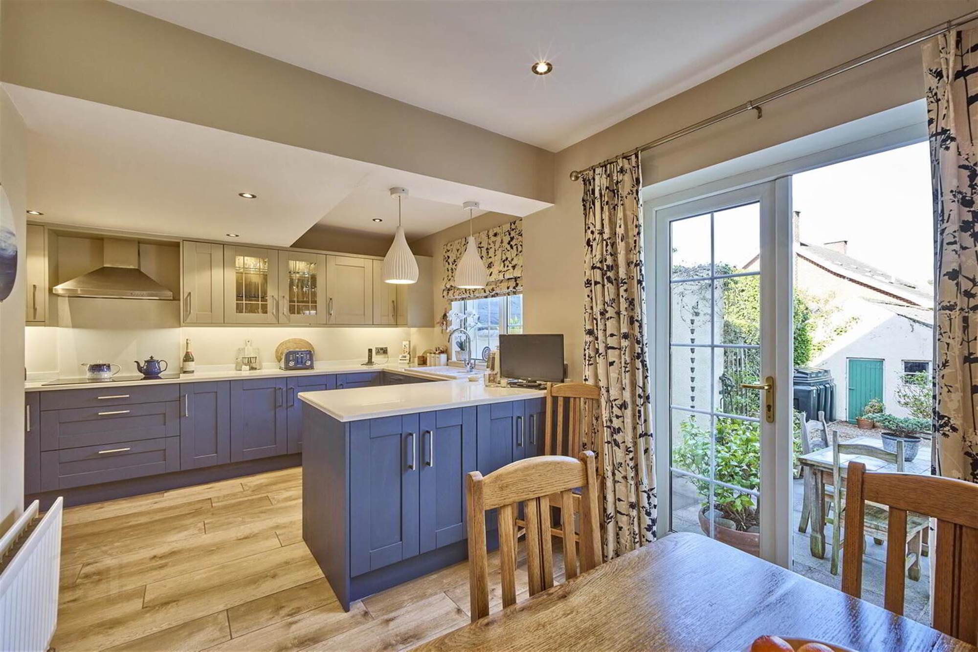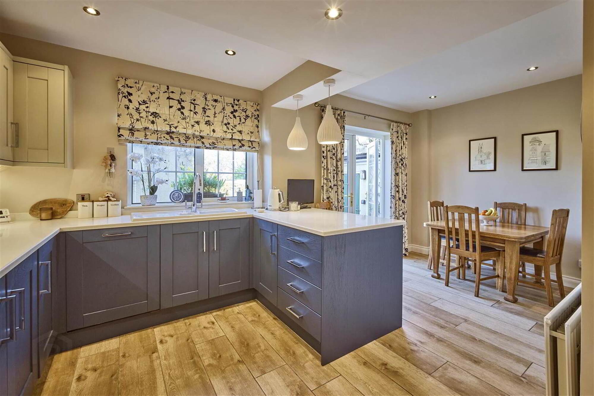 Contemporary kitchen diner with doors leading to SW facing rear and side gardens