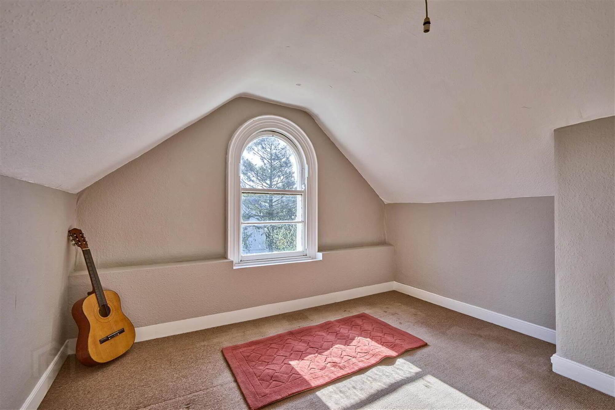 Sliding sash window, cornice ceiling, picture rail. Built-in storage cupboard.