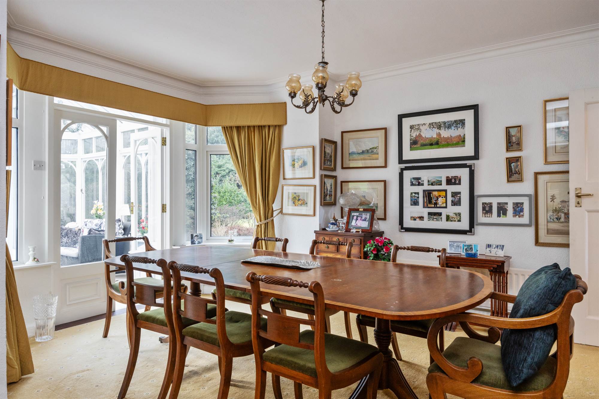 Formal dining room opening to conservatory with patio doors to the rear gardens