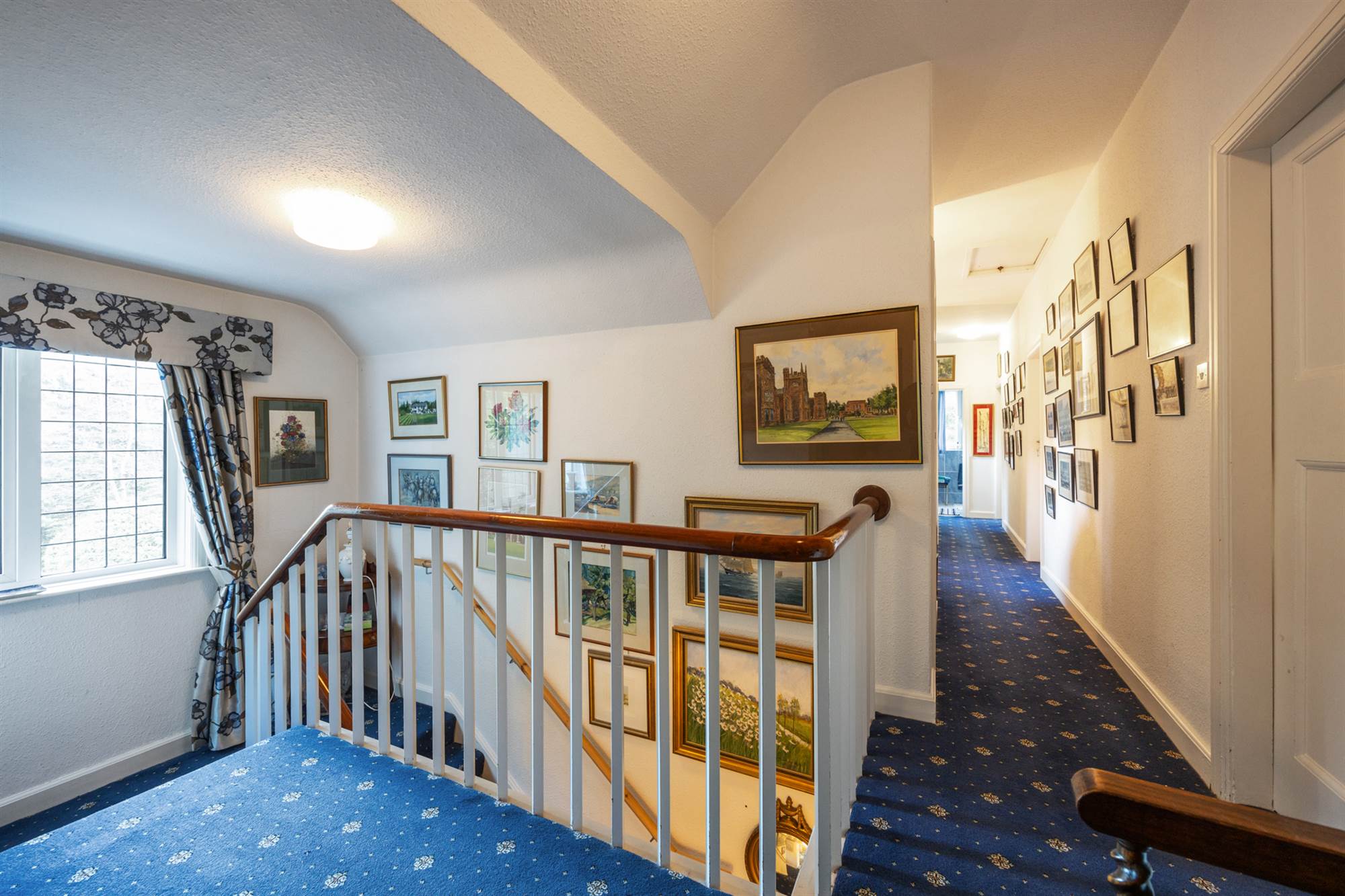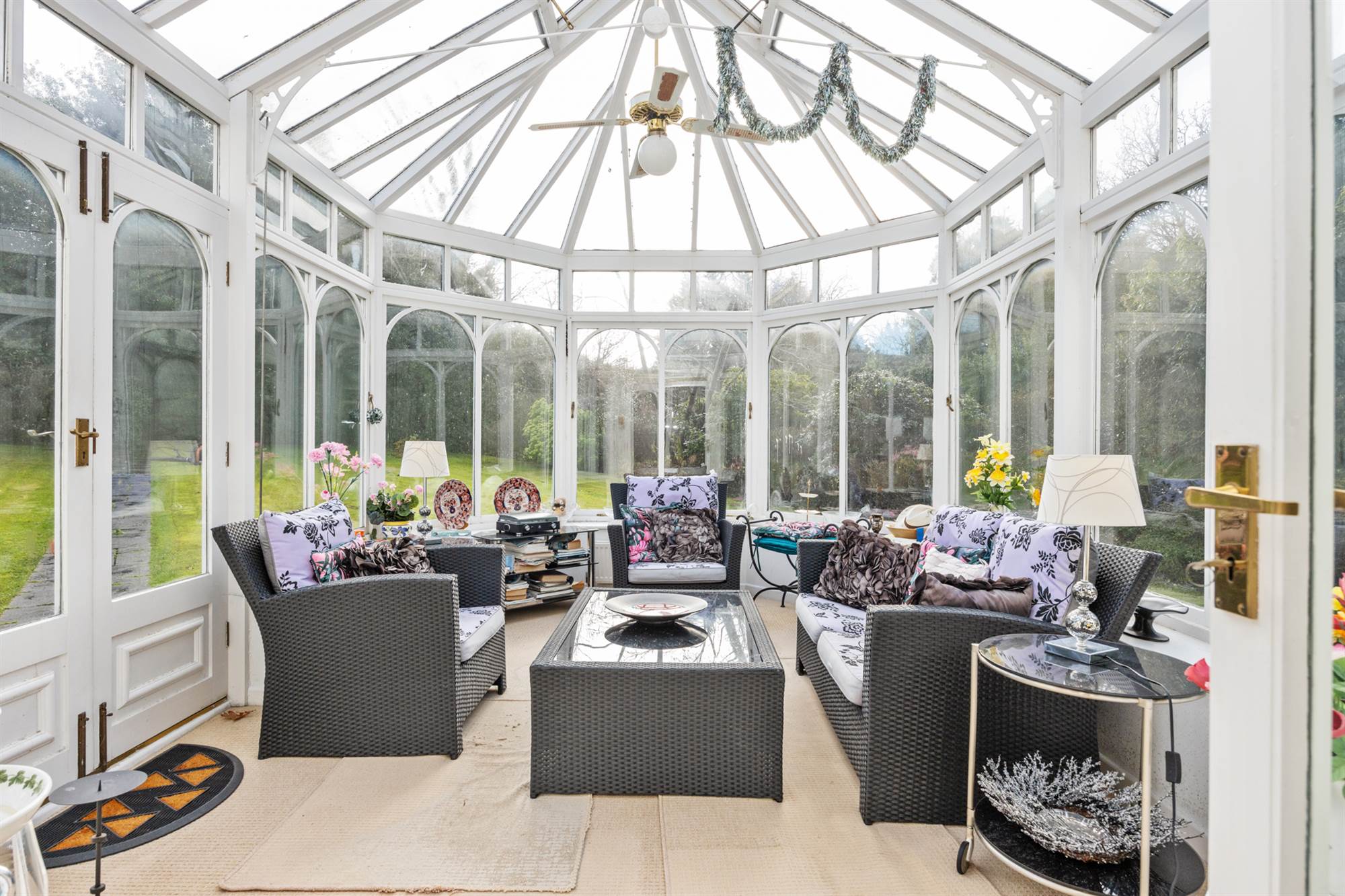 Outside, the mature one acre site is laid in lawns with mature trees and shrubs and dense border hedging offering considerable privacy. There is a garage, workshop and outbuildings for storage. From the shared lane way, entrance pillars lead to a large tarmac driveway with generous parking to the front.