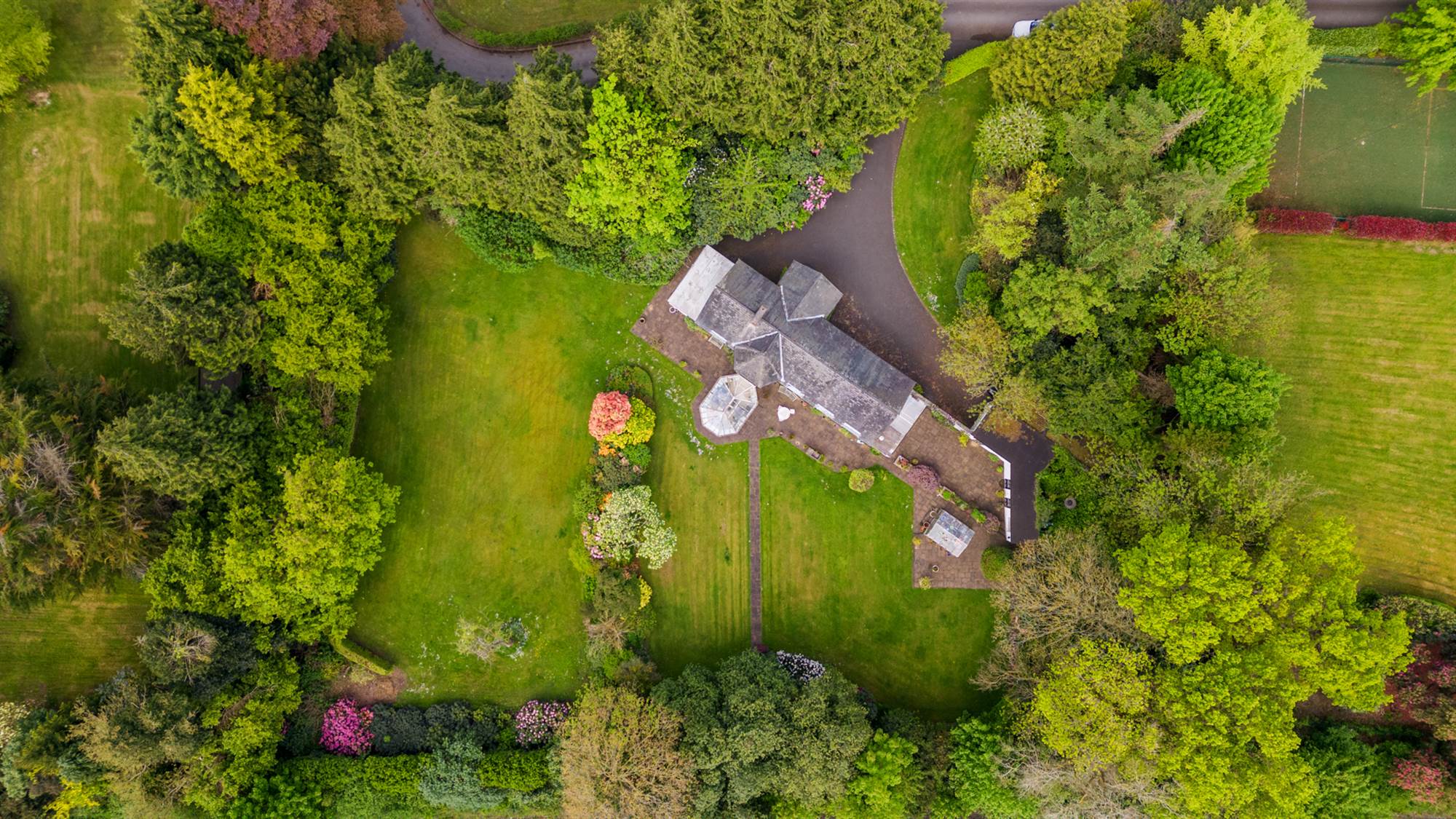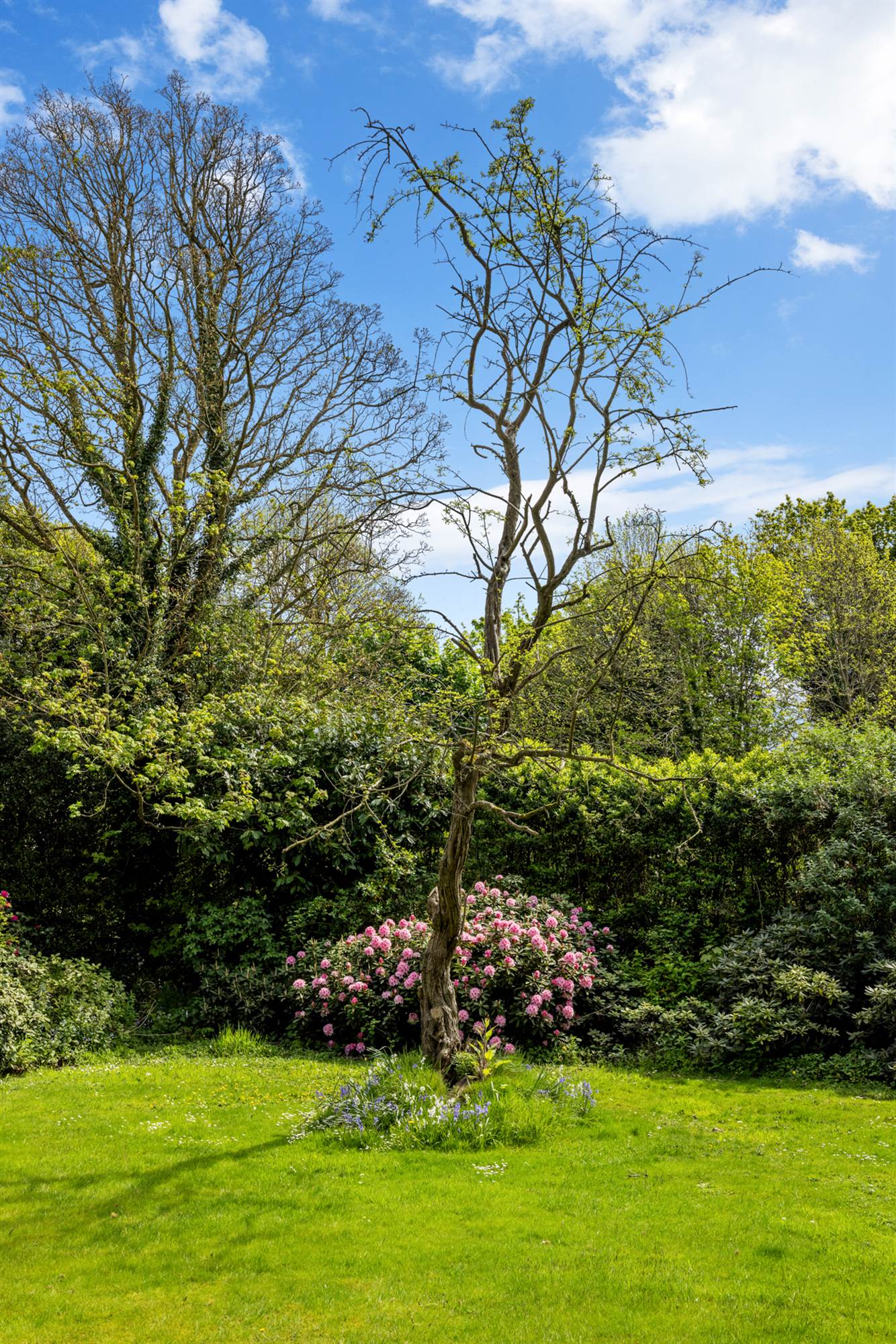 Approached by a private avenue, the property occupies a secluded site extending to c. 1 acre with mature gardens laid in lawns, paved areas and mature trees and shrubs.