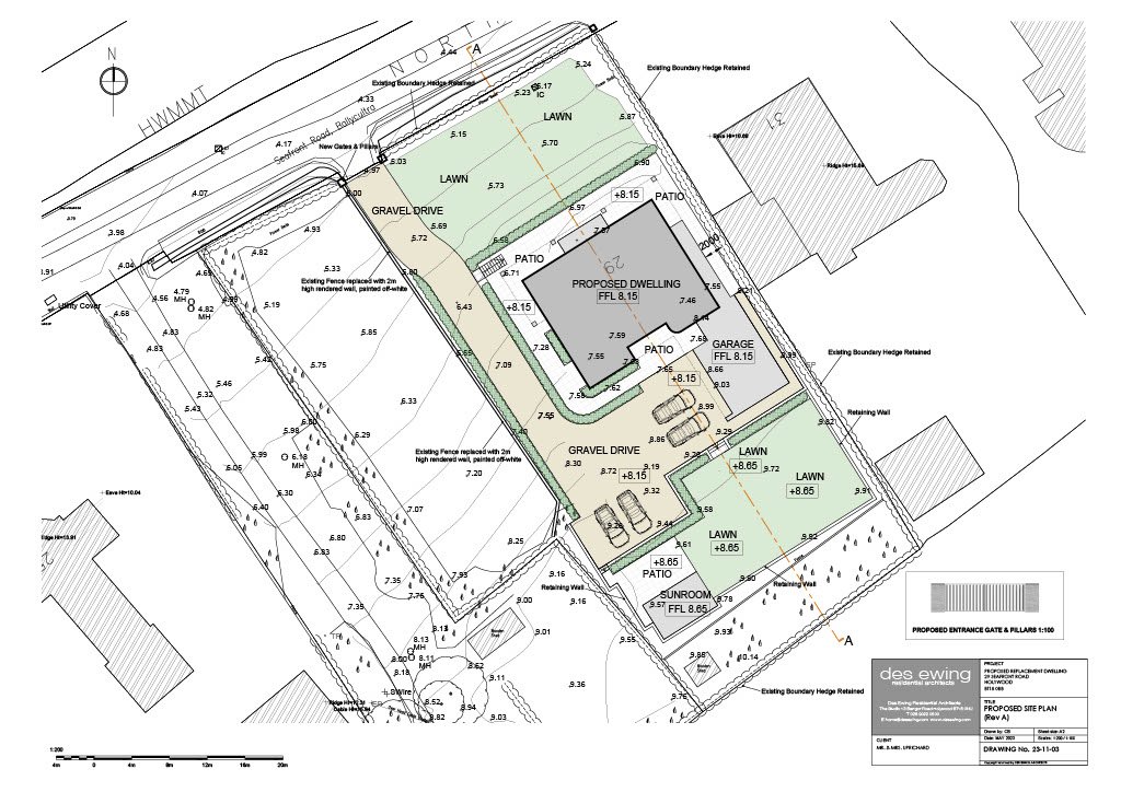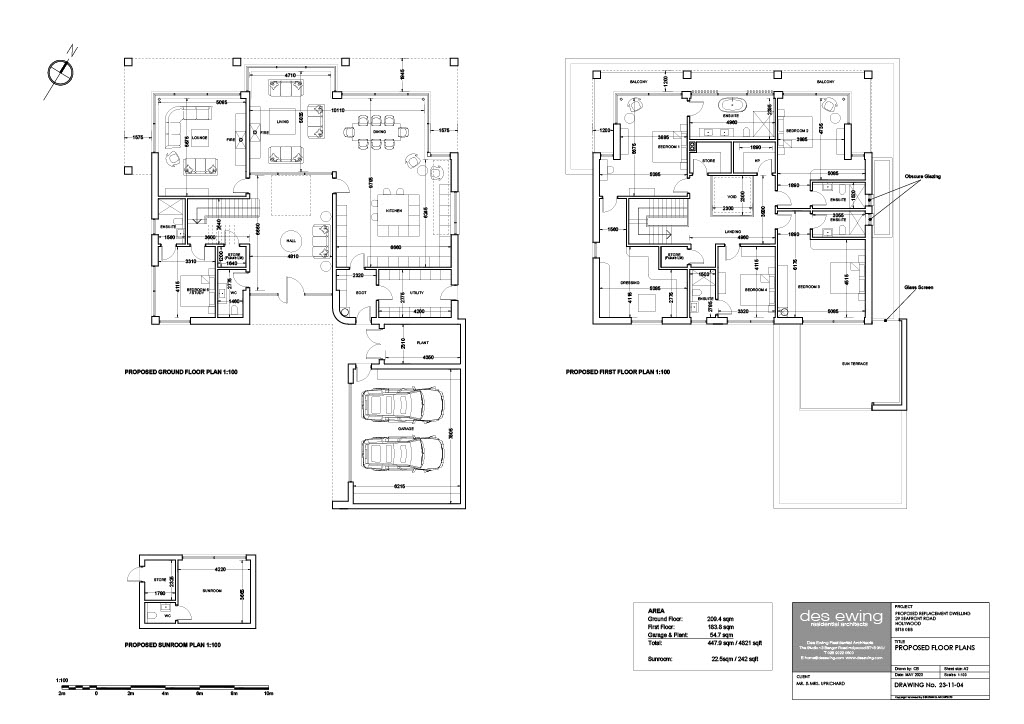 The proposed new house is a magnificent contemporary residence designed by Des Ewing extending to 4582 sq ft (excluding garage/plant room).