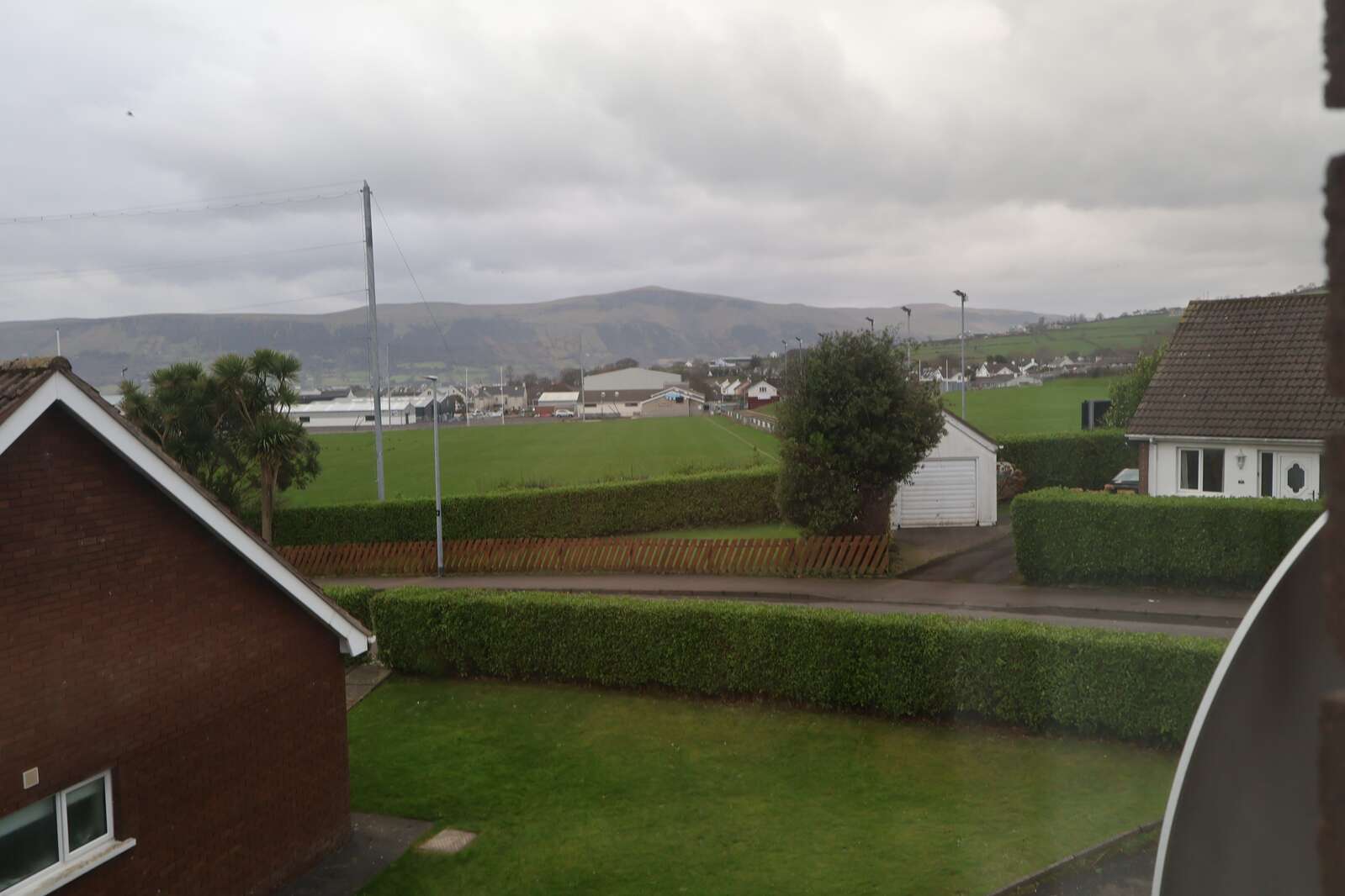 4.5m x 3.3m with built-in wardrobe, gable window with views to Garron Point and Lurig Mountain.