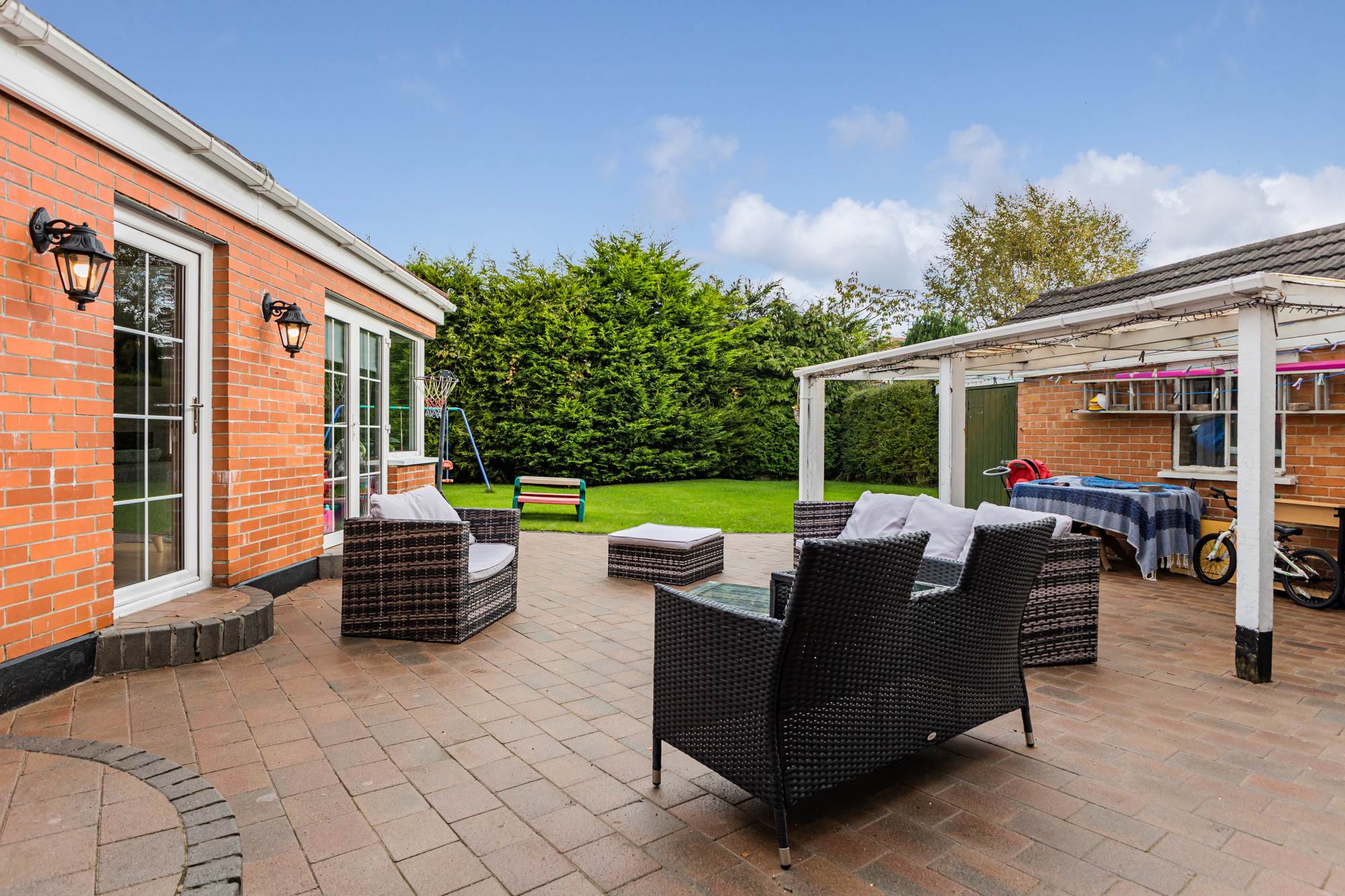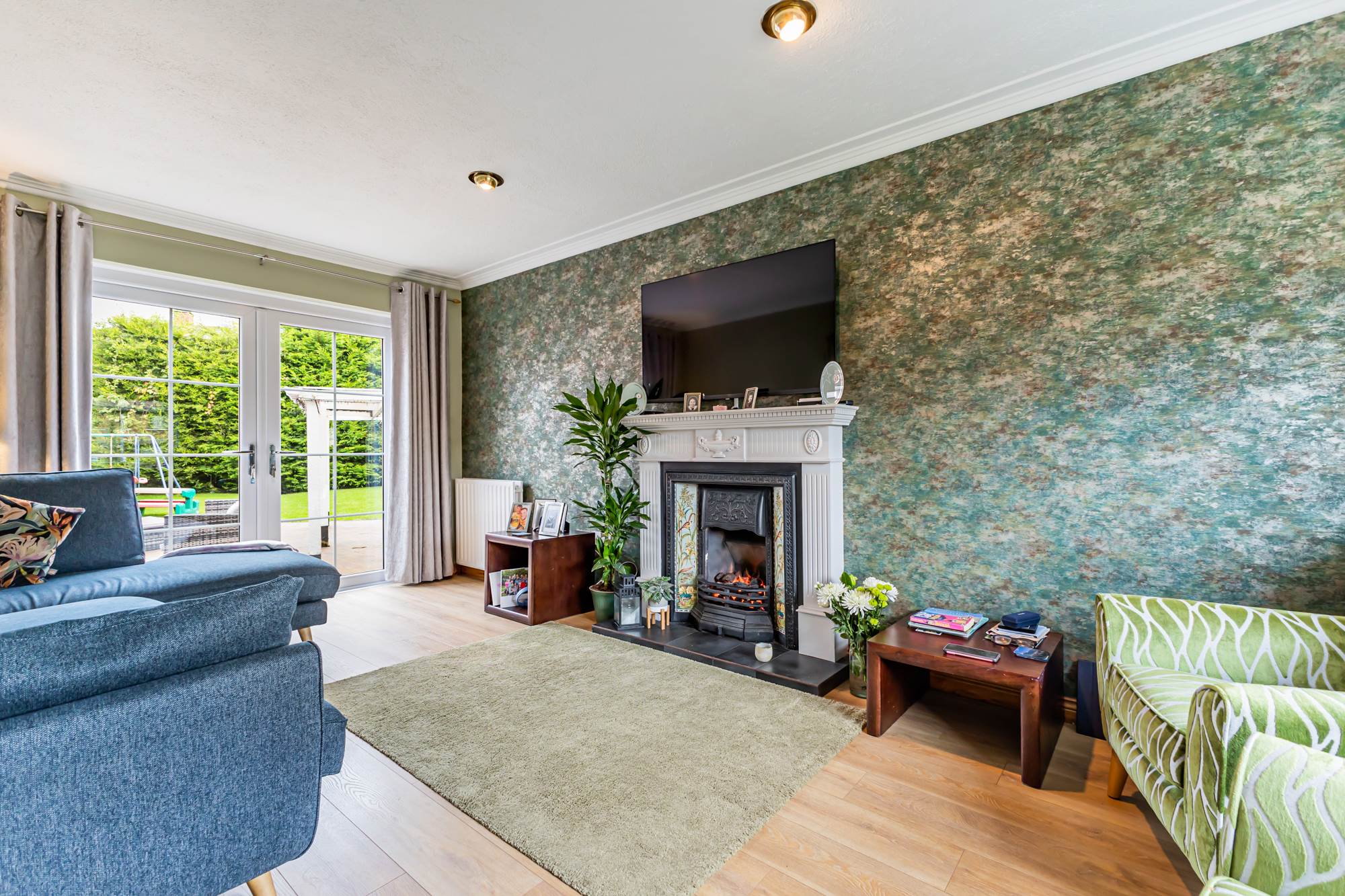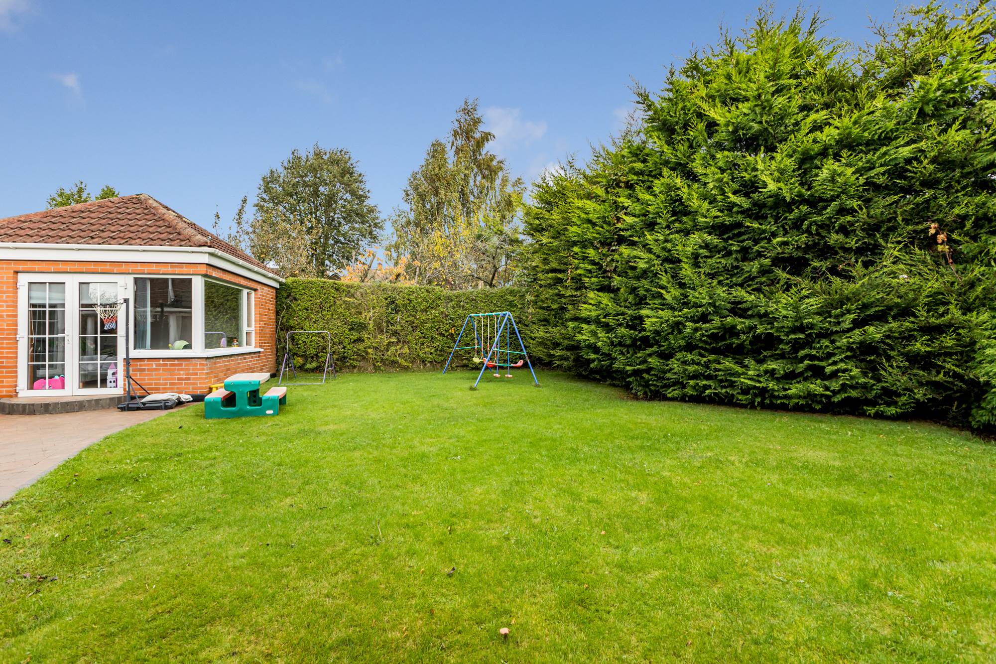 Externally, the home enjoys large gardens to both the front and rear, offering plenty of outdoor space for children to play, gardening, or summer entertaining. A private driveway provides off-street parking for multiple vehicles and leads to a detached garage for further parking or storage.