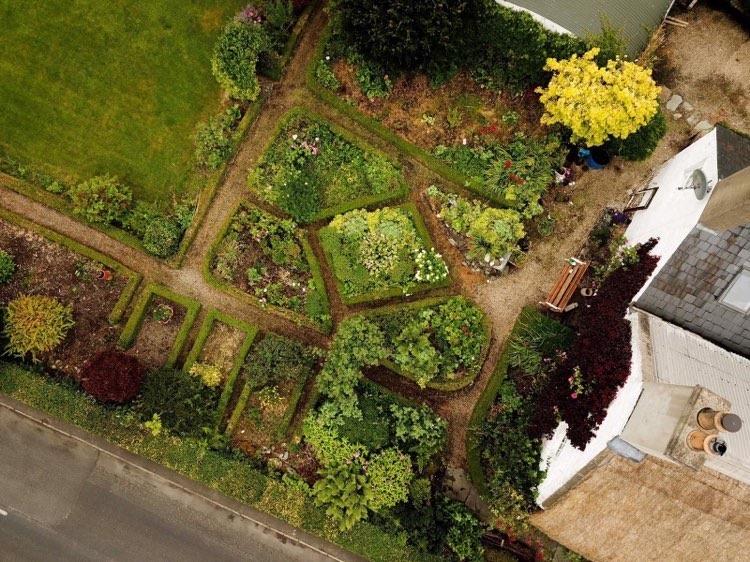 Extensive garden to side laid out in box hedges and stocked with abundance of plants, trees and shrubs etc.