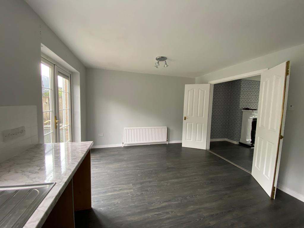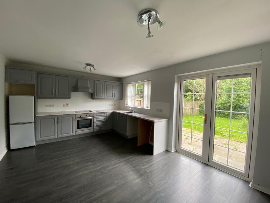 Having eye and low level units, tiling between units, integrated hob and underoven, extractor hood, plumbed for washing machine, space for tumble dryer, space for fridge / freezer, laminated wooden floor, French doors leading to patio.