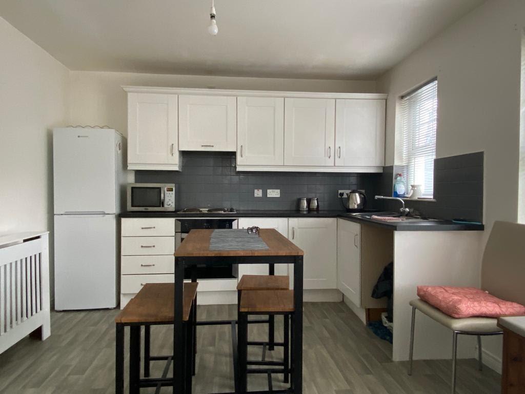 Having sink unit, plumbed for washing machine, space for tumble dryer.
