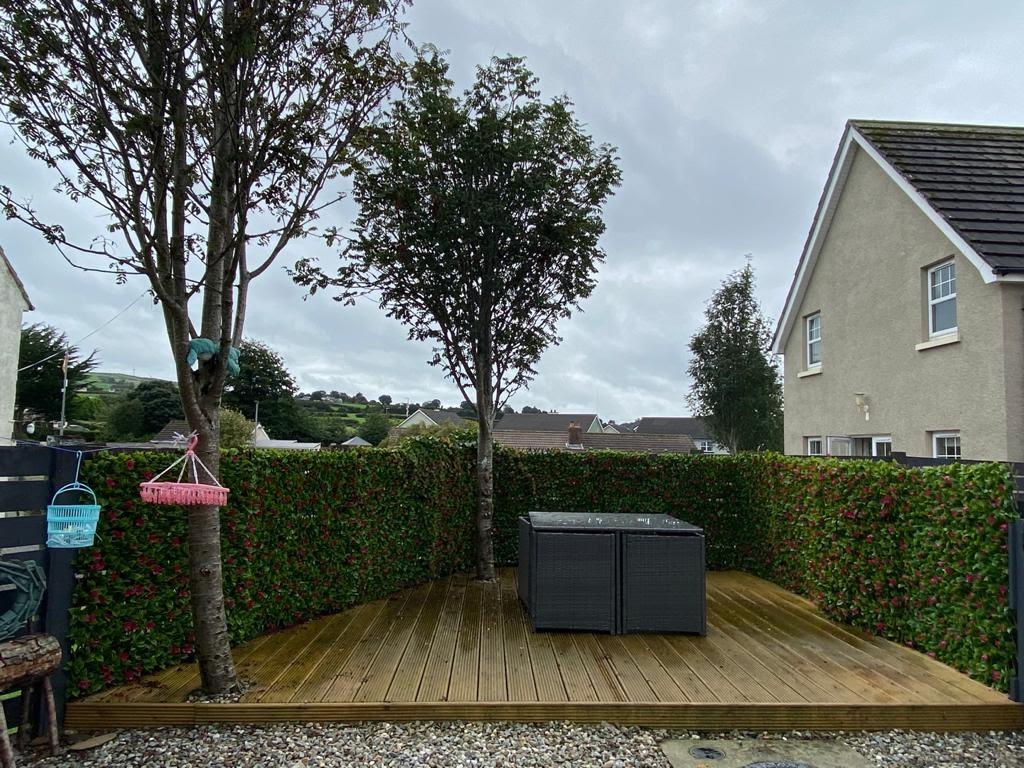 Yard to rear enclosed by fence and gate. Decked patio area.