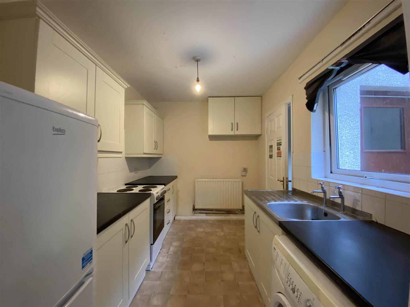 Having eye and low level units, single drainer stainless steel sink unit, wired for cooker, plumbed for washing machine.