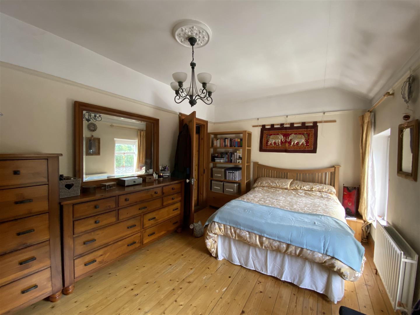 Having ceiling cornicing and wooden floor.