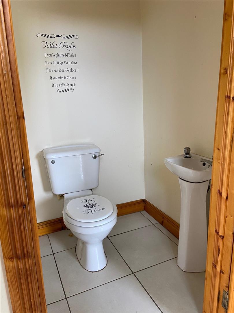 Having eye and low level units, tiling between units, 1 1/2 bowl stainless steel sink unit with mixer taps, gas hob, electric underoven, stainless steel extractor hood, integrated fridge / freezer, plumbed for dishwasher, understairs storage. Cupboard off having space for tumble dryer, plumbed for washing machine, tiled floor.