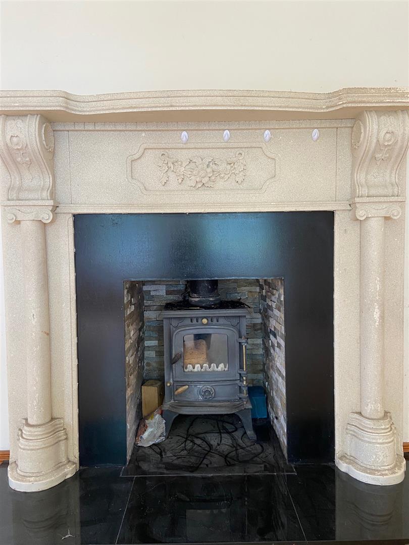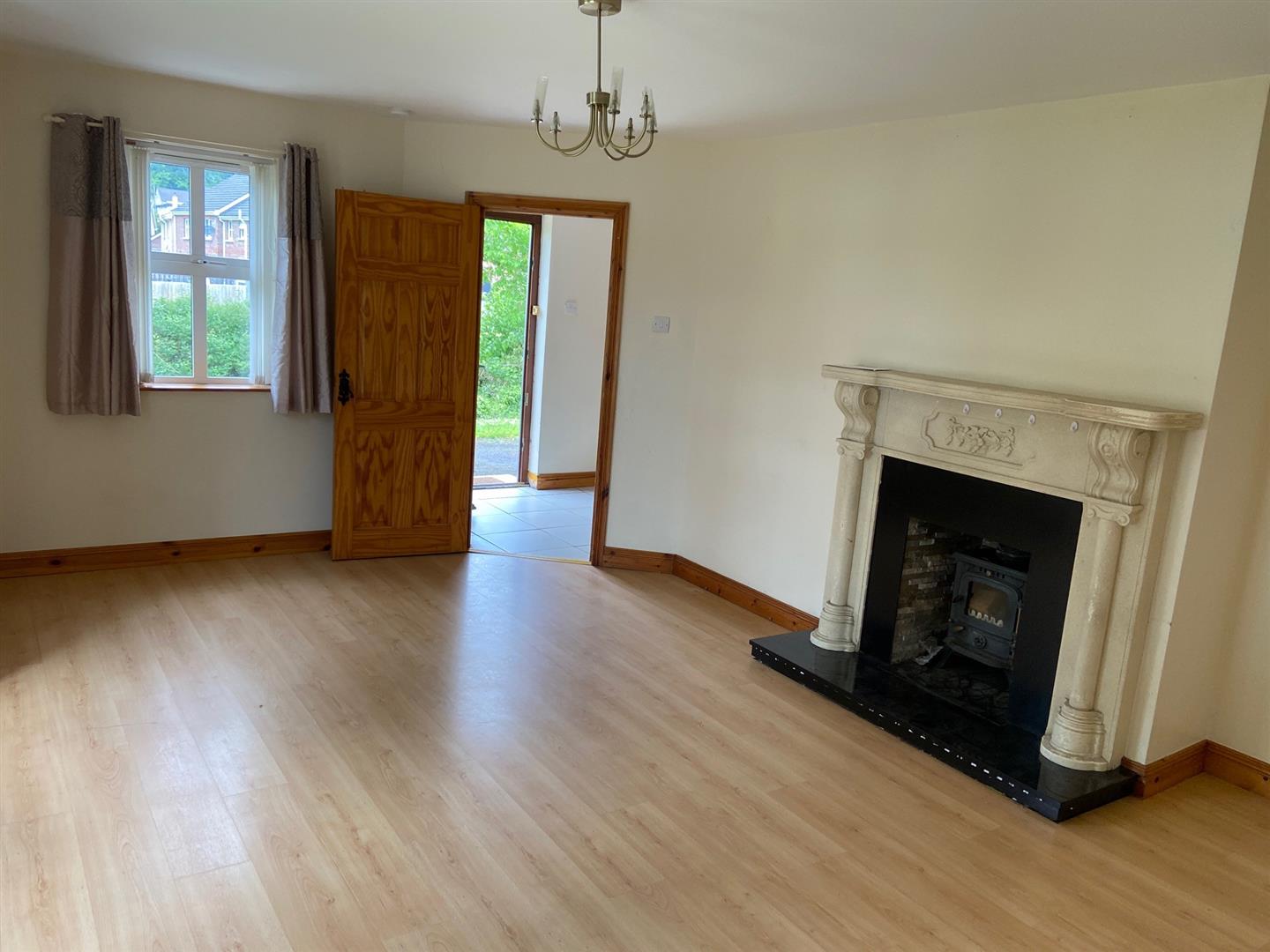 Having attractive fireplace with wood buring stove and laminated wooden floor.