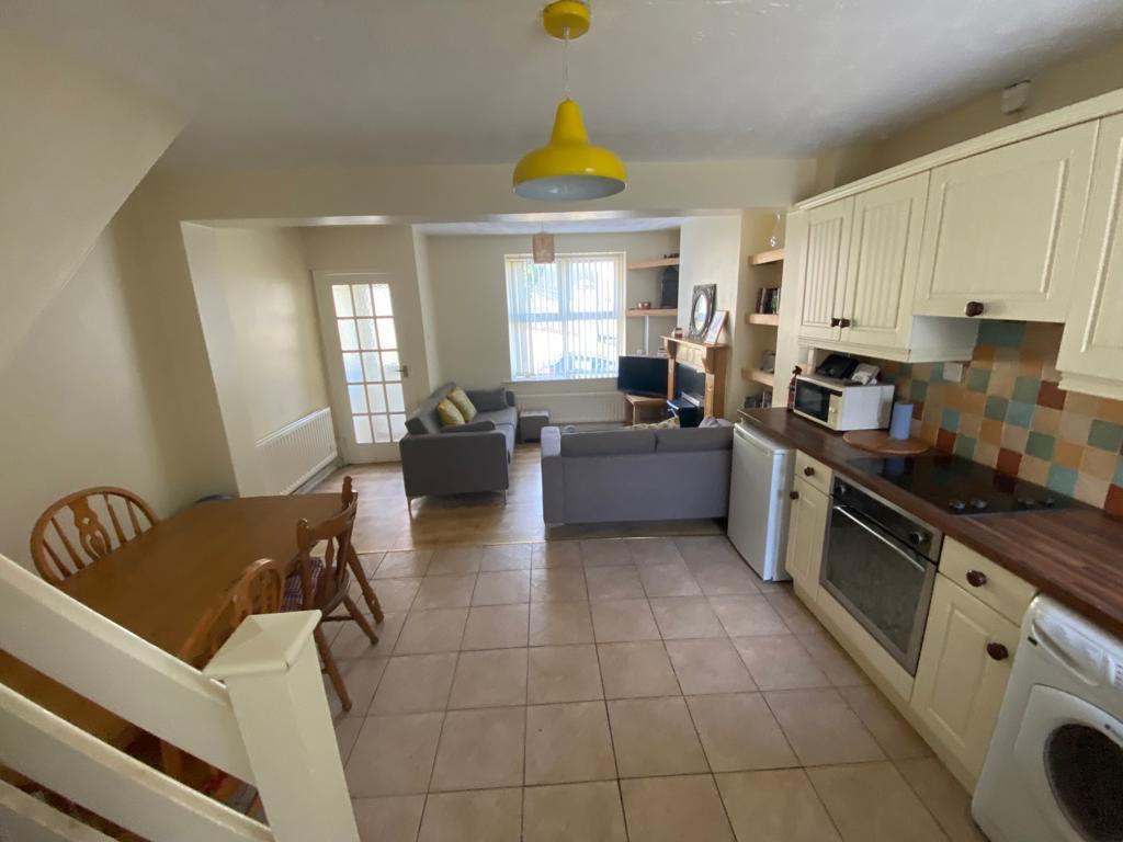 Attractive fireplace; laminate wooden floor in lounge area; eye and low level units; tiling between units; single drainer stainless steel sink unit with mixer taps; plumbed for washing machine; space for fridge freezer; integrated hob and under oven; extractor fan; tiled floor.