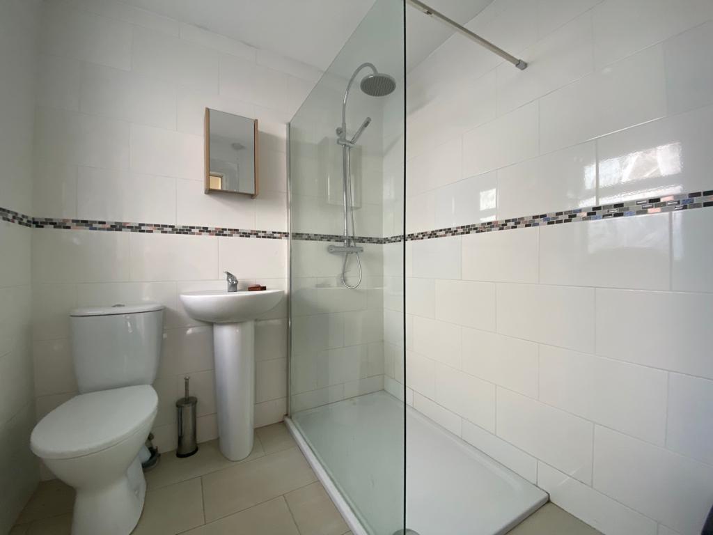 Fully tiled walk in shower; wash hand basin and WC; fully tiled walls; tiled floor