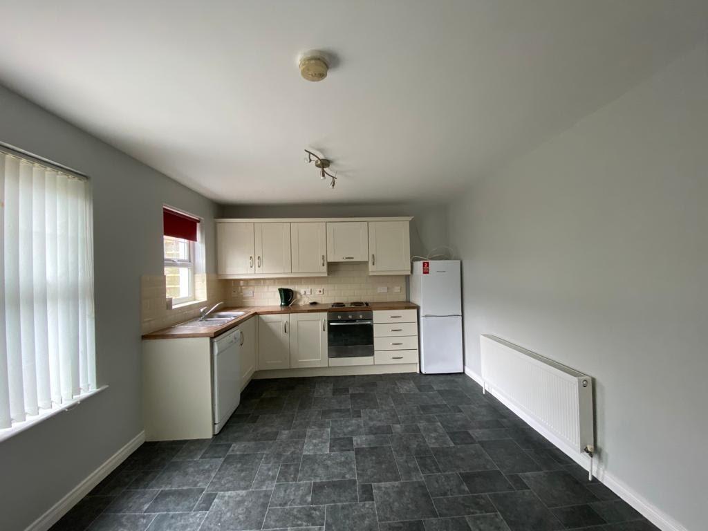 Having eye and low level units; 1 1/2 bowl stainless steel sink unit with mixer taps; hob, under oven; space for fridge freezer; tiling between units; plumbed for dishwasher; dining space