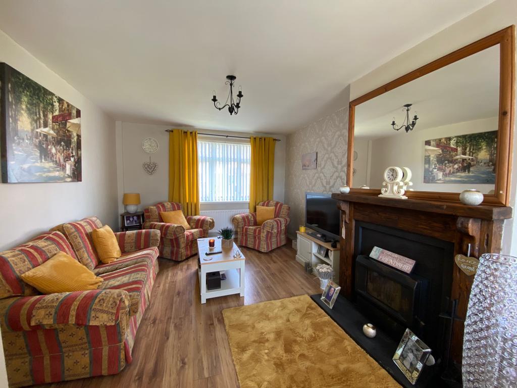 Having fireplace with ' Parkray' Stove, laminated wooden floor. Archway to kitchen.