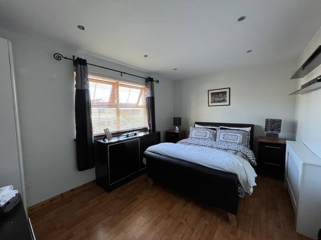 Having wall to wall built in wardrobes and drawers, laminated wooden floor.