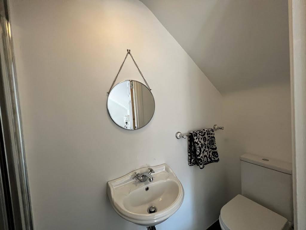 Comprising walk in shower with PVC cladding to walls, whb and wc, laminated wooden floor.