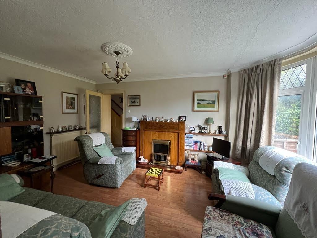 Having ornamental fireplace, ceililng cornicing and centre rose, laminated wooden floor.