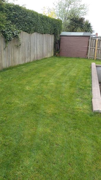 Neat lawns to front, side and rear bordered by fence.