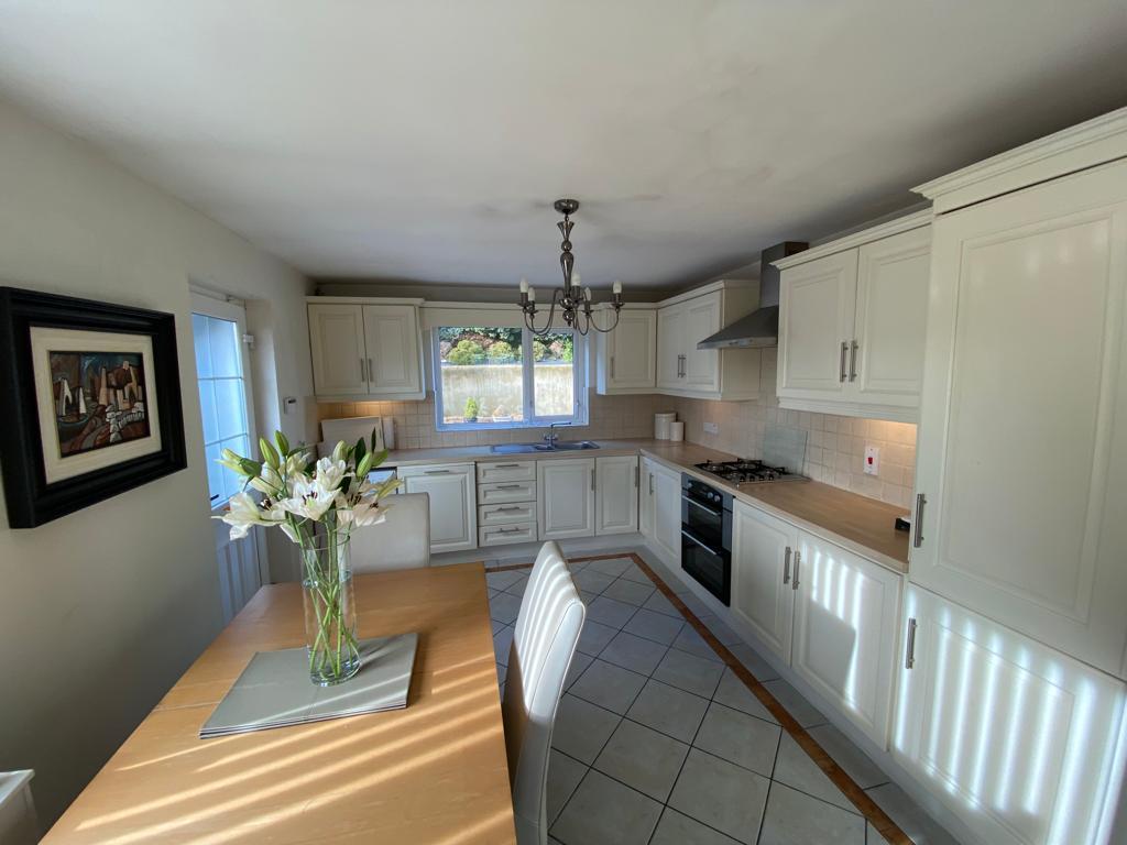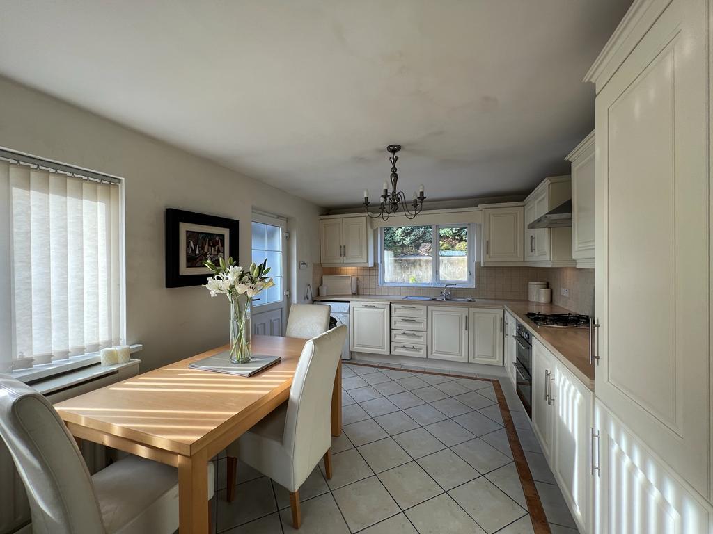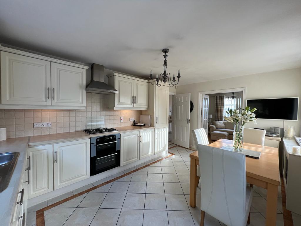 Having range of eye and low level units, 1 1/2 bowl stainless steel sink unit with mixer taps, integrated fridge/freezer and dishwasher, gas hob, double underoven, stainless steel extractor hood, tiled floor, double doors leading to Dining/Family room.