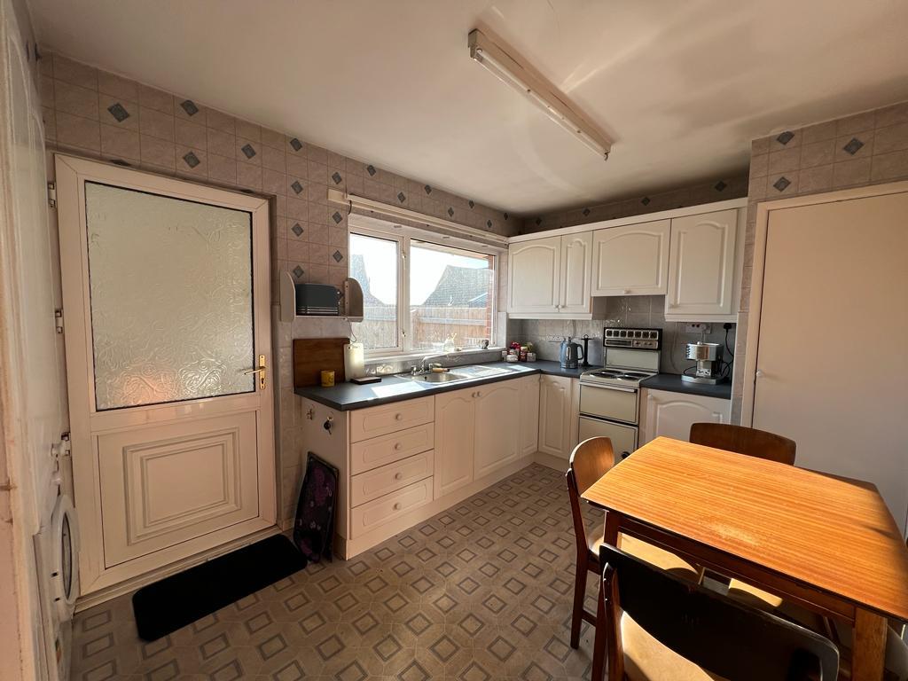 Having eye and low level units, tiling between units, single drainer stainless steel sink unit with mixer taps, wired for cooker, plumbed for washing machine.