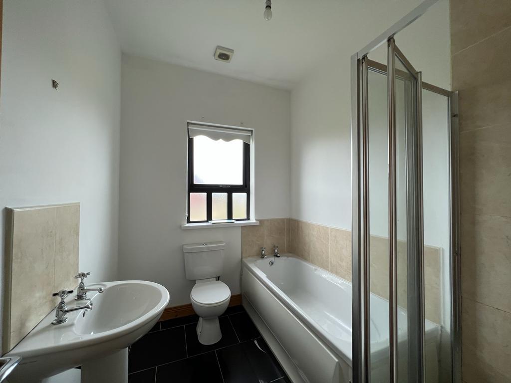 Comprising bath, walk in shower, whb and wc, tiled floor.