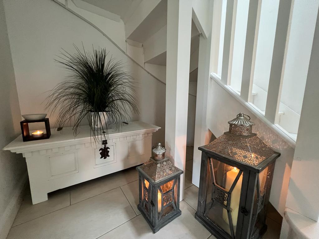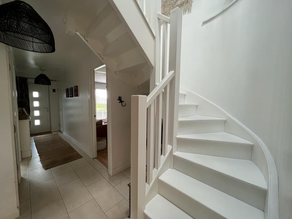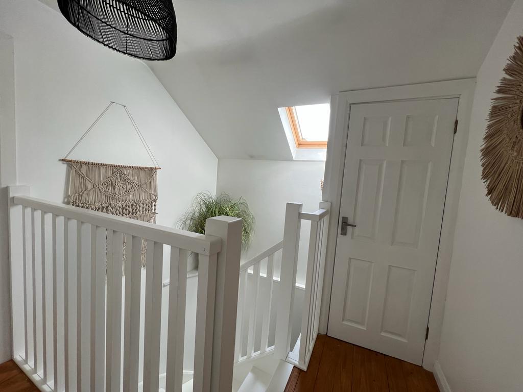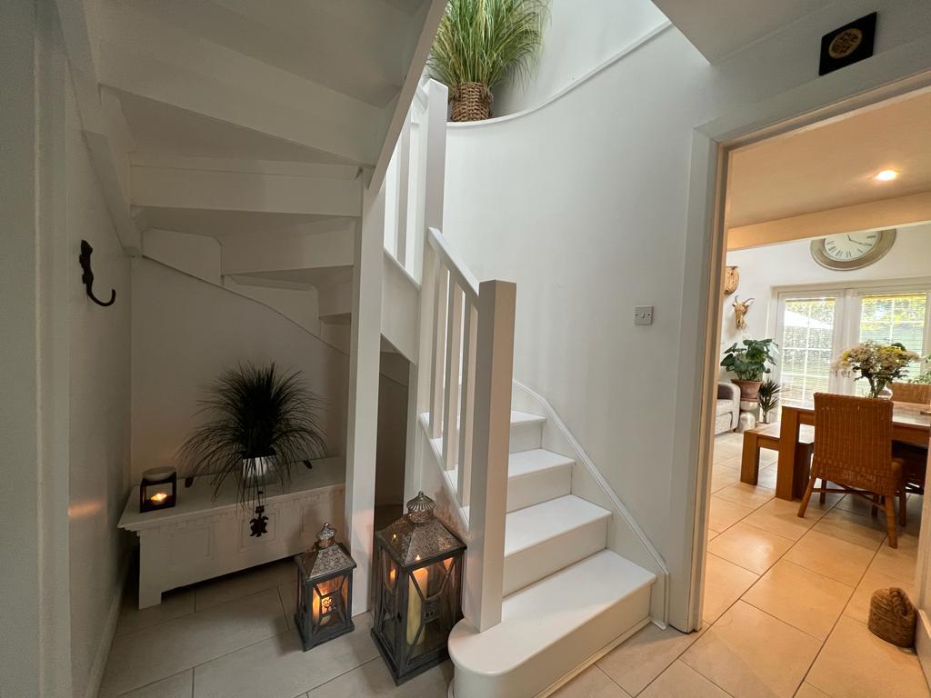 Having cloaks cupboard, hotpress, tiled floor, beautiful white curved staircase to first floor