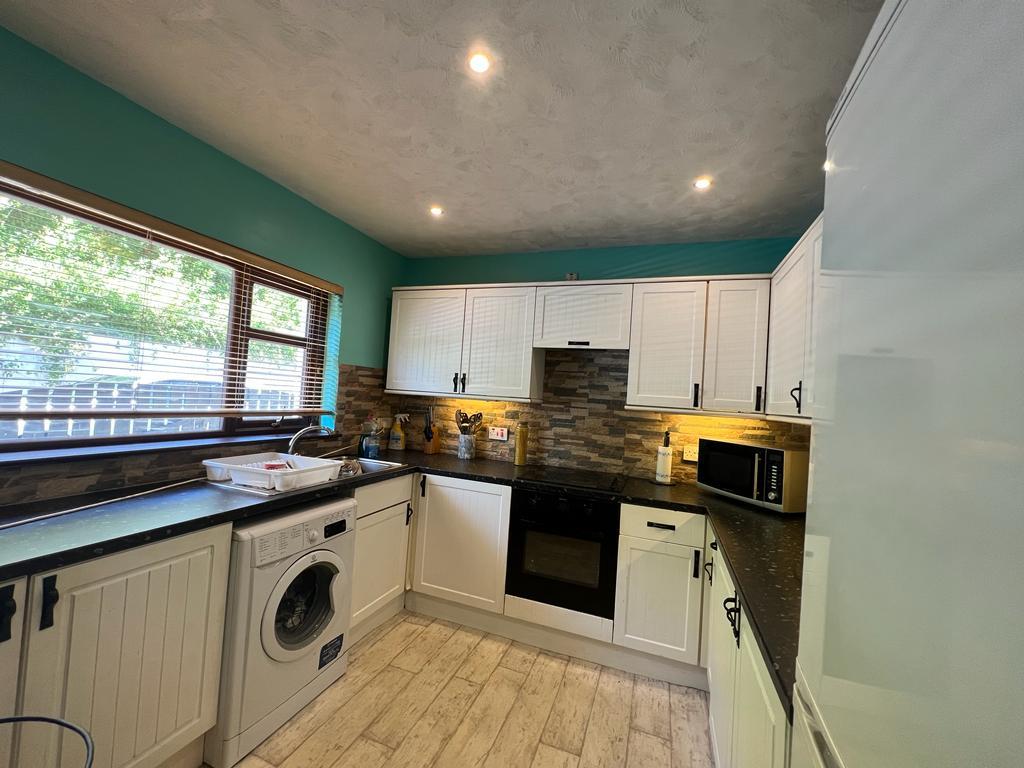 Having eye and low level units, single drainer stainless steel sink unit with mixer taps, hob, underoven, extractor hood, plumbed for washing machine, space for fridge / freezer.