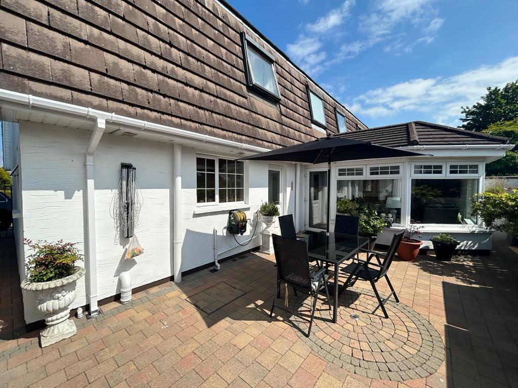 Paved patio area to rear and side enclosed by fence.