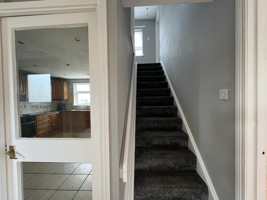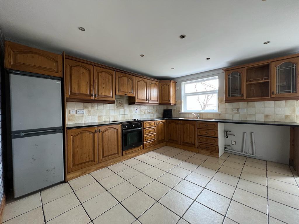 Having range of eye and low level units, tiling between units, 1 1/2 Bowl sink unit, Hob & under oven, space for fridge/freezer, plumber for washing machine, space for tumble dryer, ample dining space, under stair storage, recessed lighting, tiled floor.