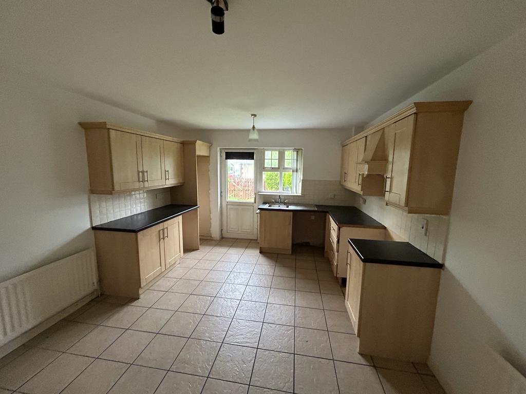 Having eye and low level units, tiling between units, single drainer stainless steel sink unit with mixer taps, plumbed for washing machine, space for fridge / freezer, space for cooker, extractor fan, space for tumble dryer, tiled floor.
