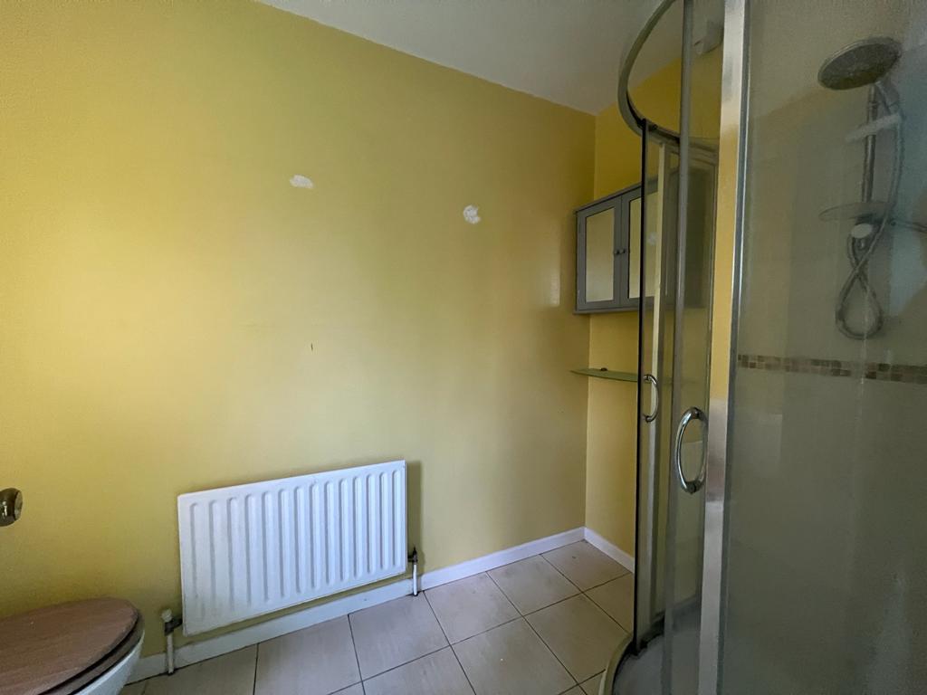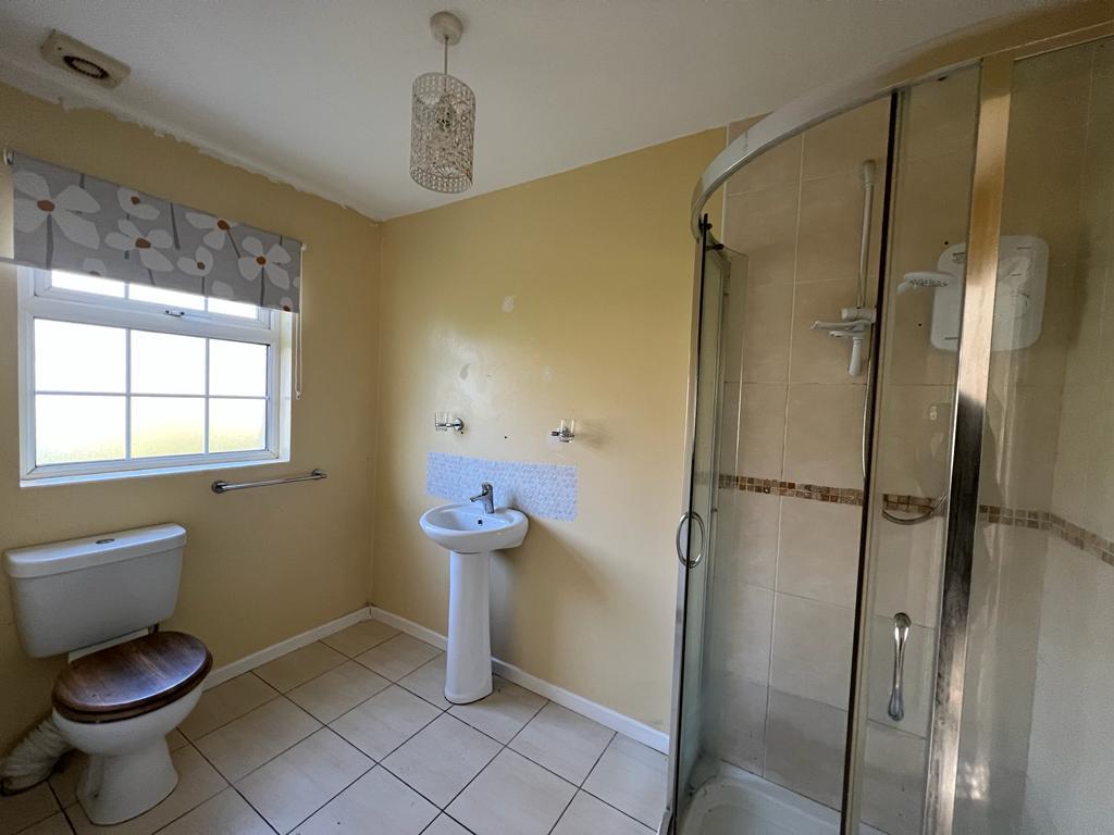 Comprising fully tiled walk in shower, whb and wc, tiled floor.