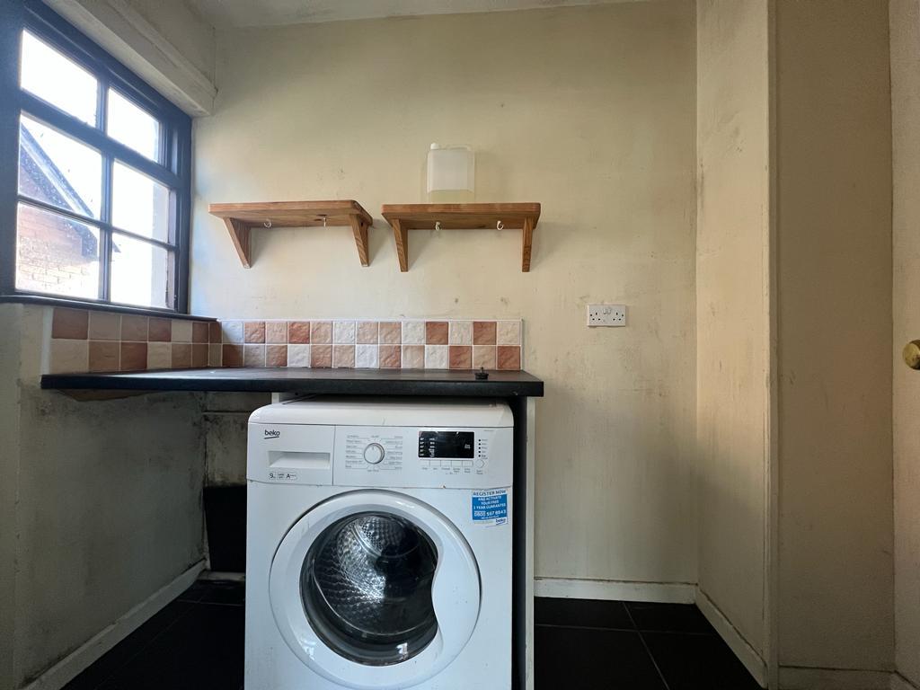 Plumbed for washing machine, space for tumble dryer, tiled floor.