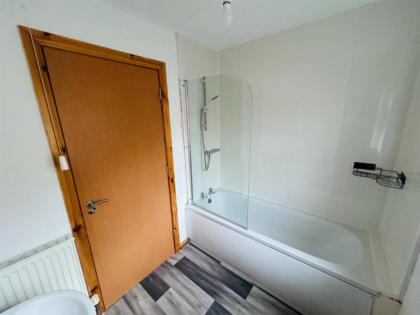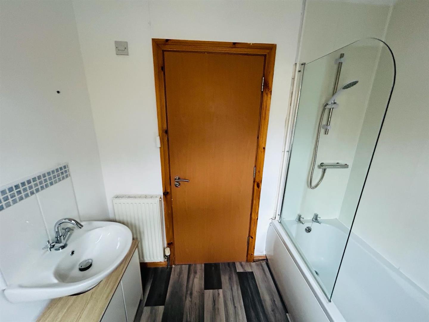 Comprising bath, whb and wc, extractor fan, PVC cladding to walls.