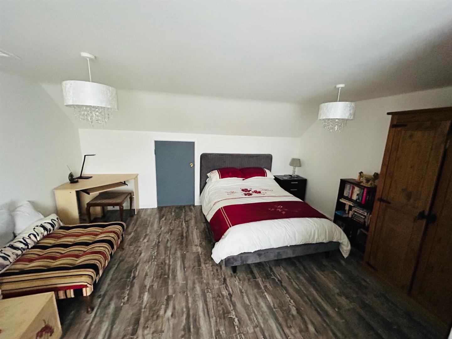 Comprising bath with shower attachment to taps, electric shower over and tiling around, whb and wc, hotpress, laminated wooden floor, extractor fan.