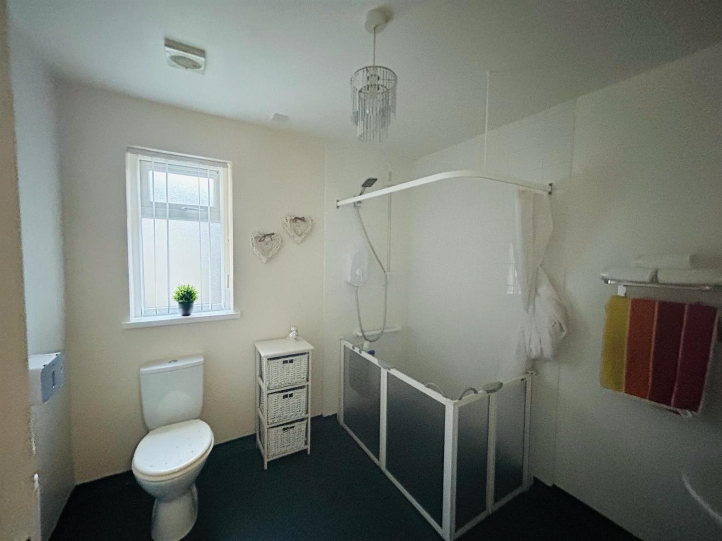 Comprising walk in electric shower with tiling around, whb and wc, extractor fan.
