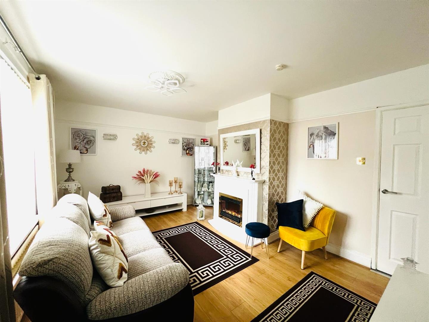 Having ornamental fireplace with electric inset, laminated wooden floor.