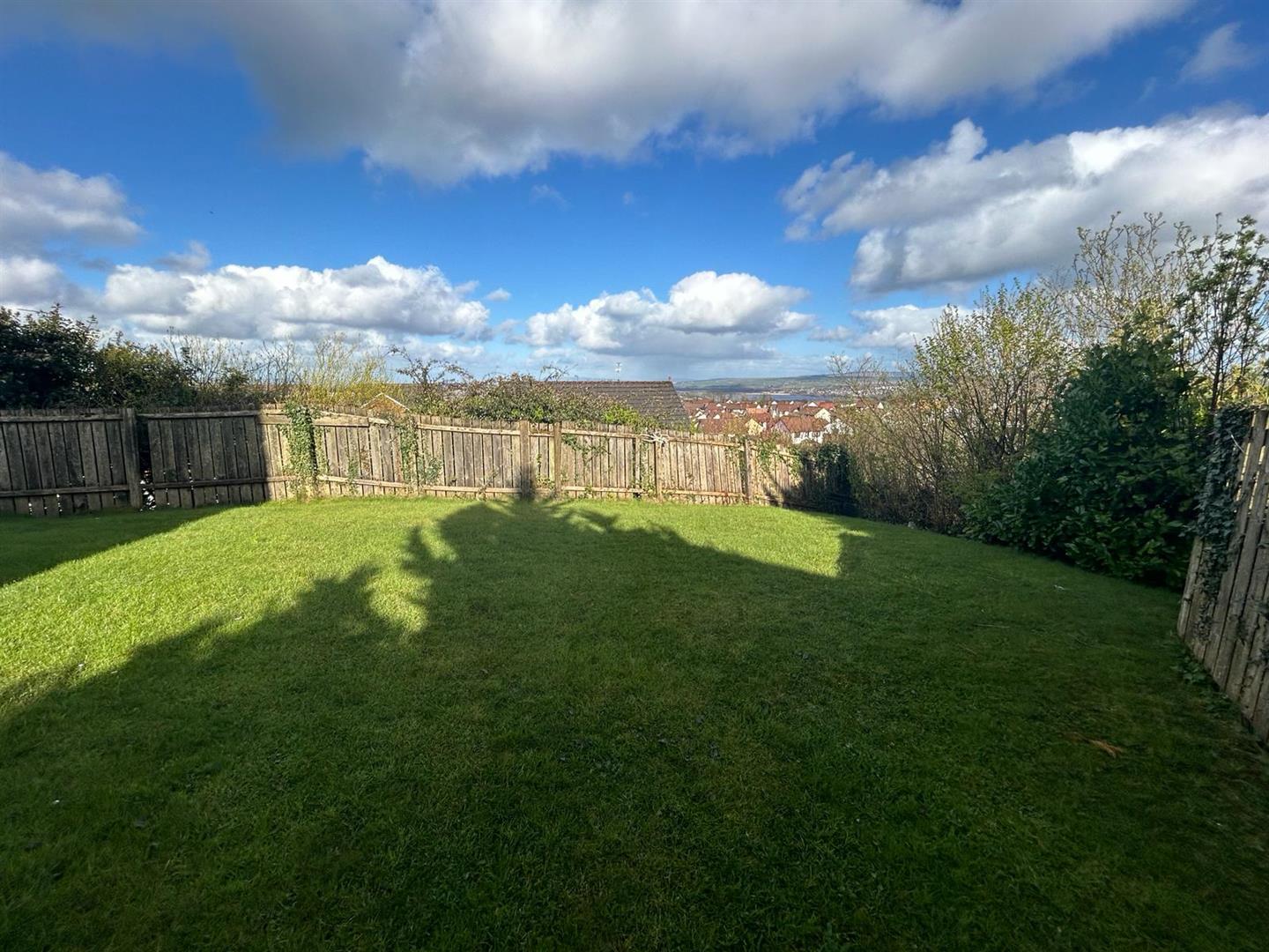 Lawn to rear enclosed by fence.