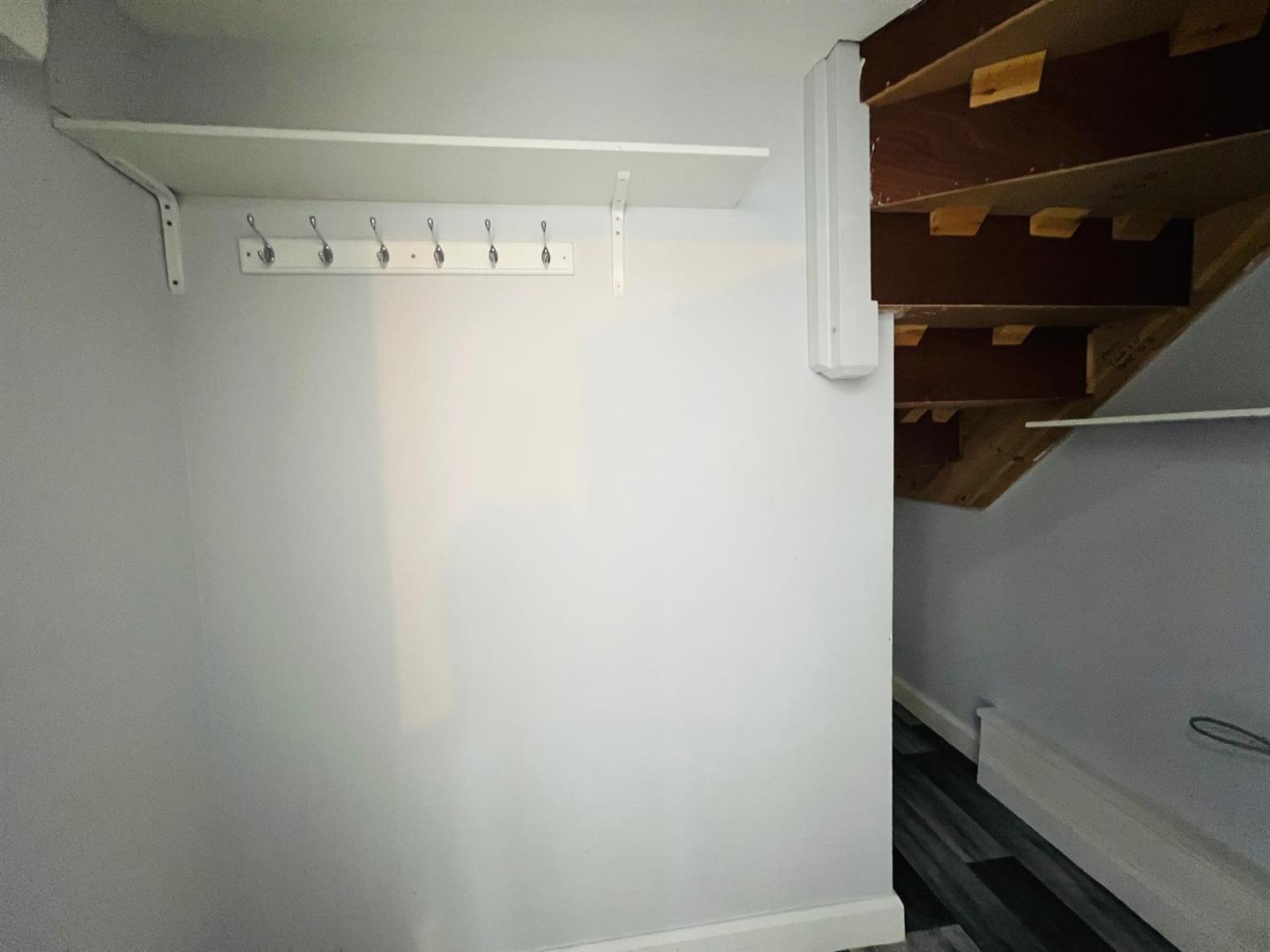 Comprising fully tiled walk in shower, whb with tiling around, wc, chrome heated towel rail, extractor fan, tiled floor.