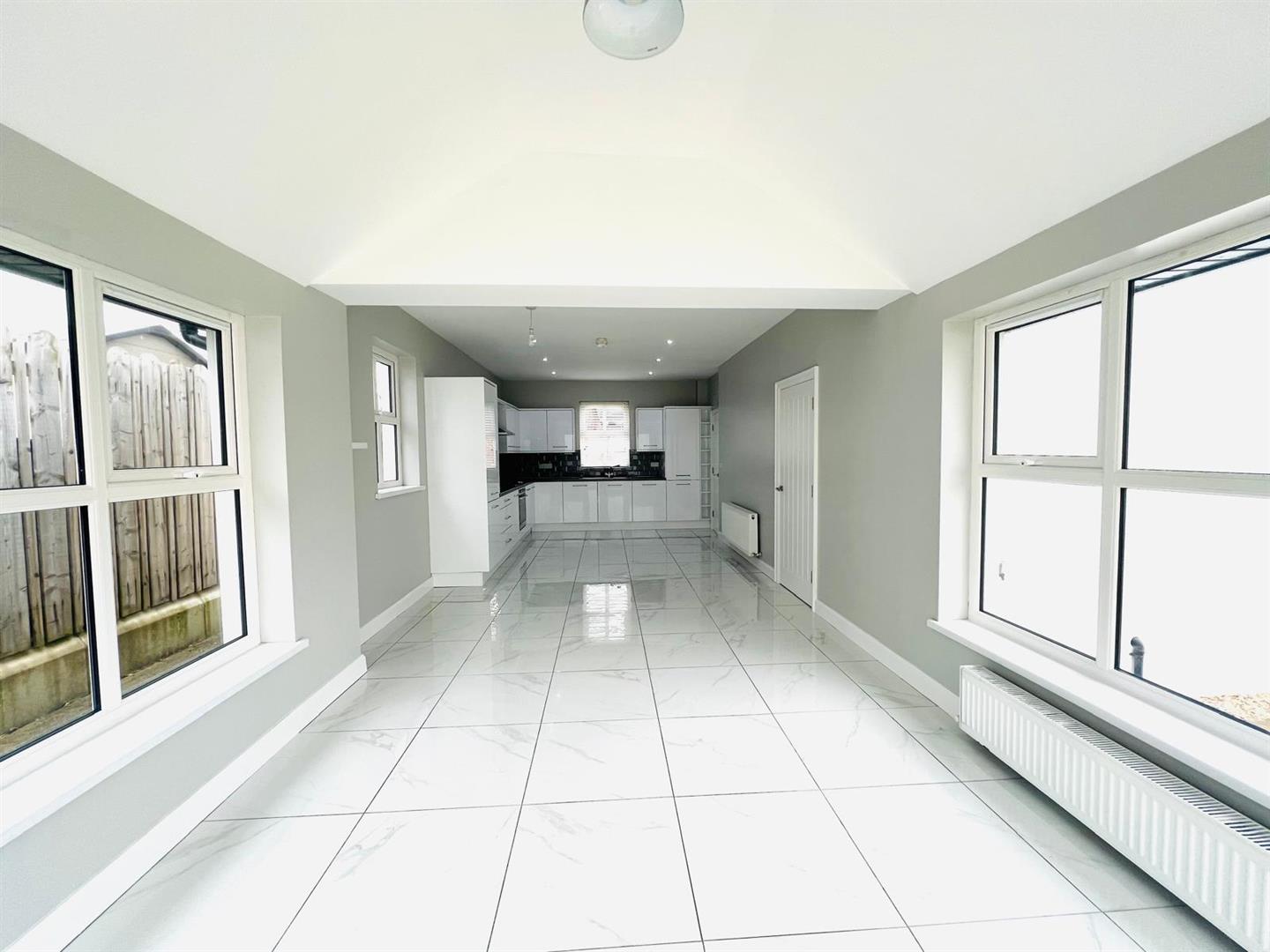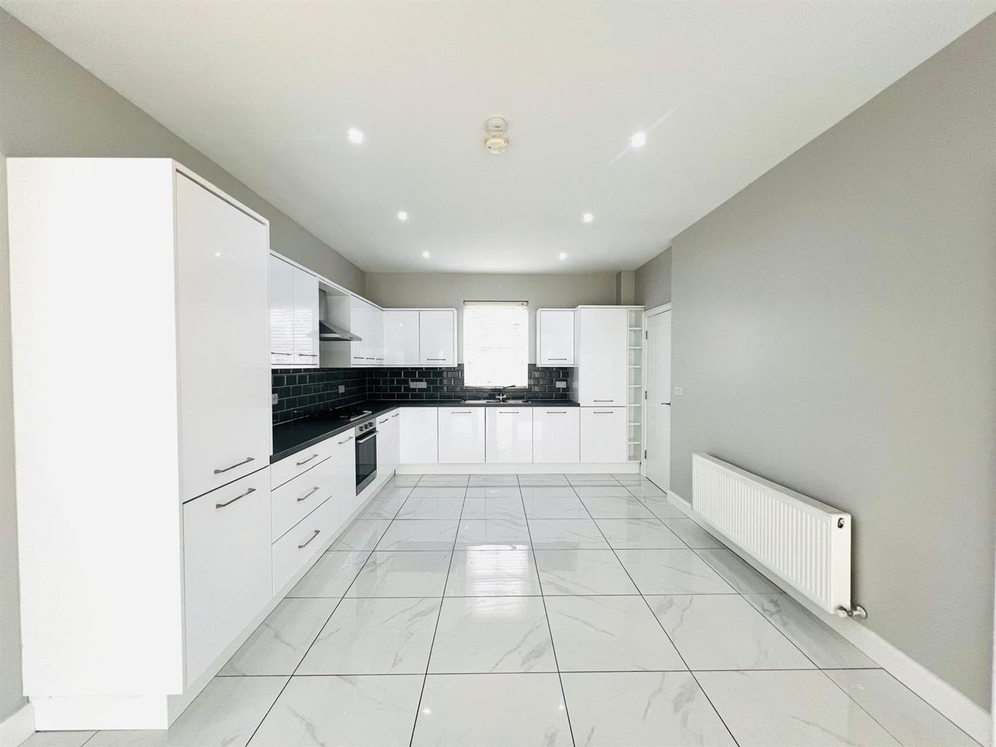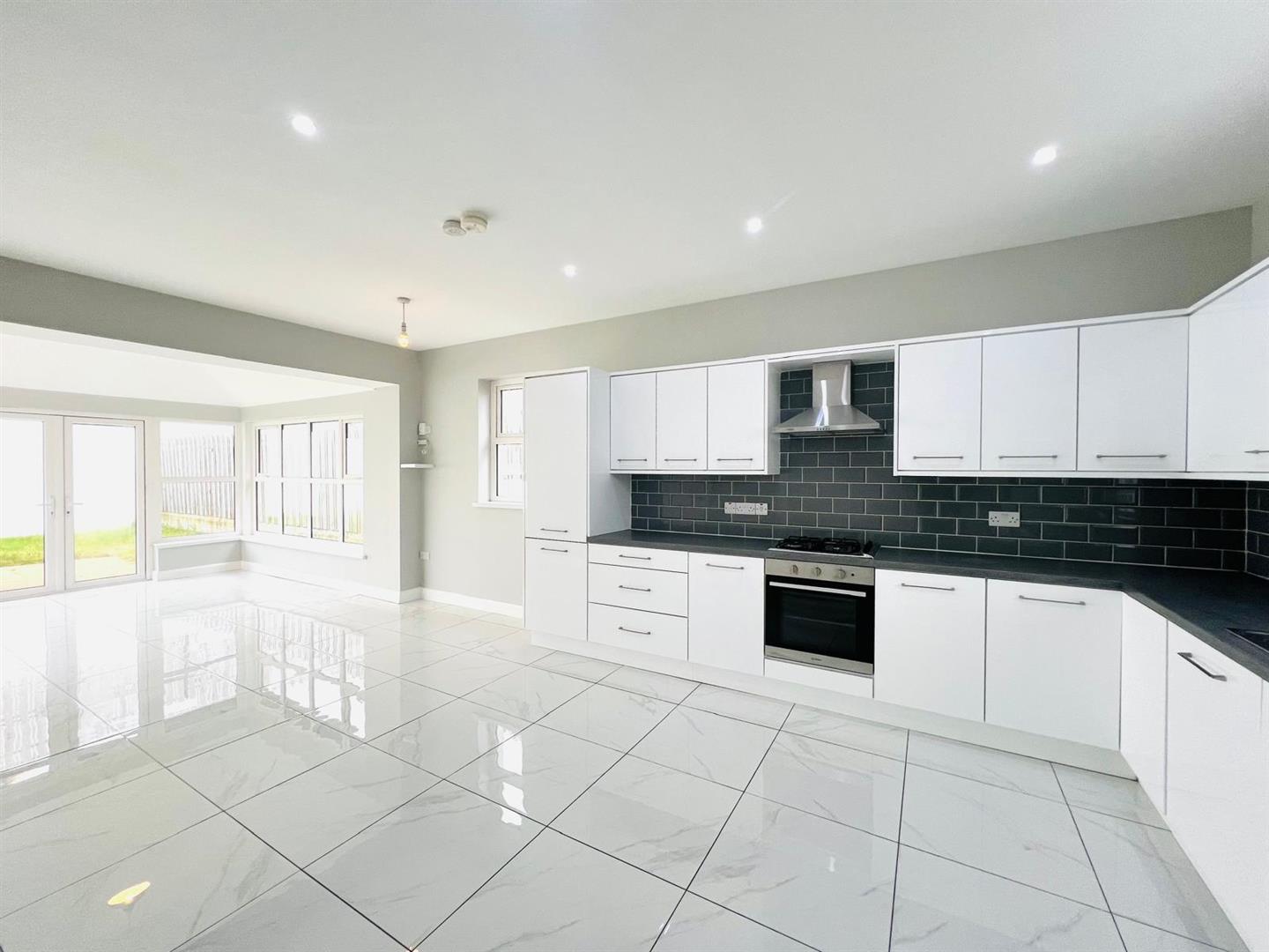 Having excellent eye and low level units, single drainer stainless steel sink unit with mixer taps, gas hob, electric underoven, stainless steel extractor hood, integrated fridge / freezer and dishwasher, plumbed for washing machine, recessed lighting in kitchen area, large understairs storage, ample dining space, large living area with French doors to patio area, tiled floor.