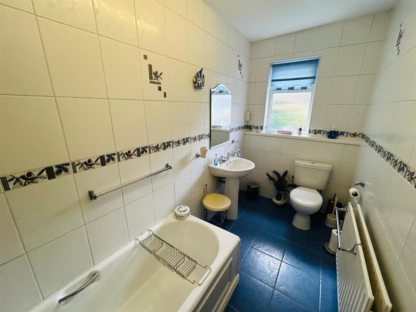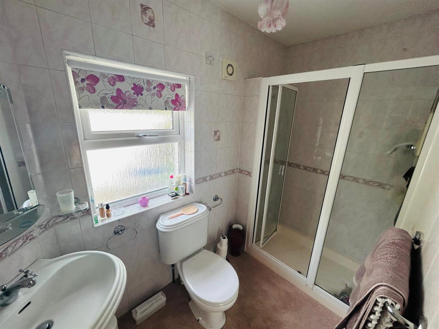 Comprising bath with electric shower shower over and shower attachment to taps, whb and wc, fully tiled walls and floor.