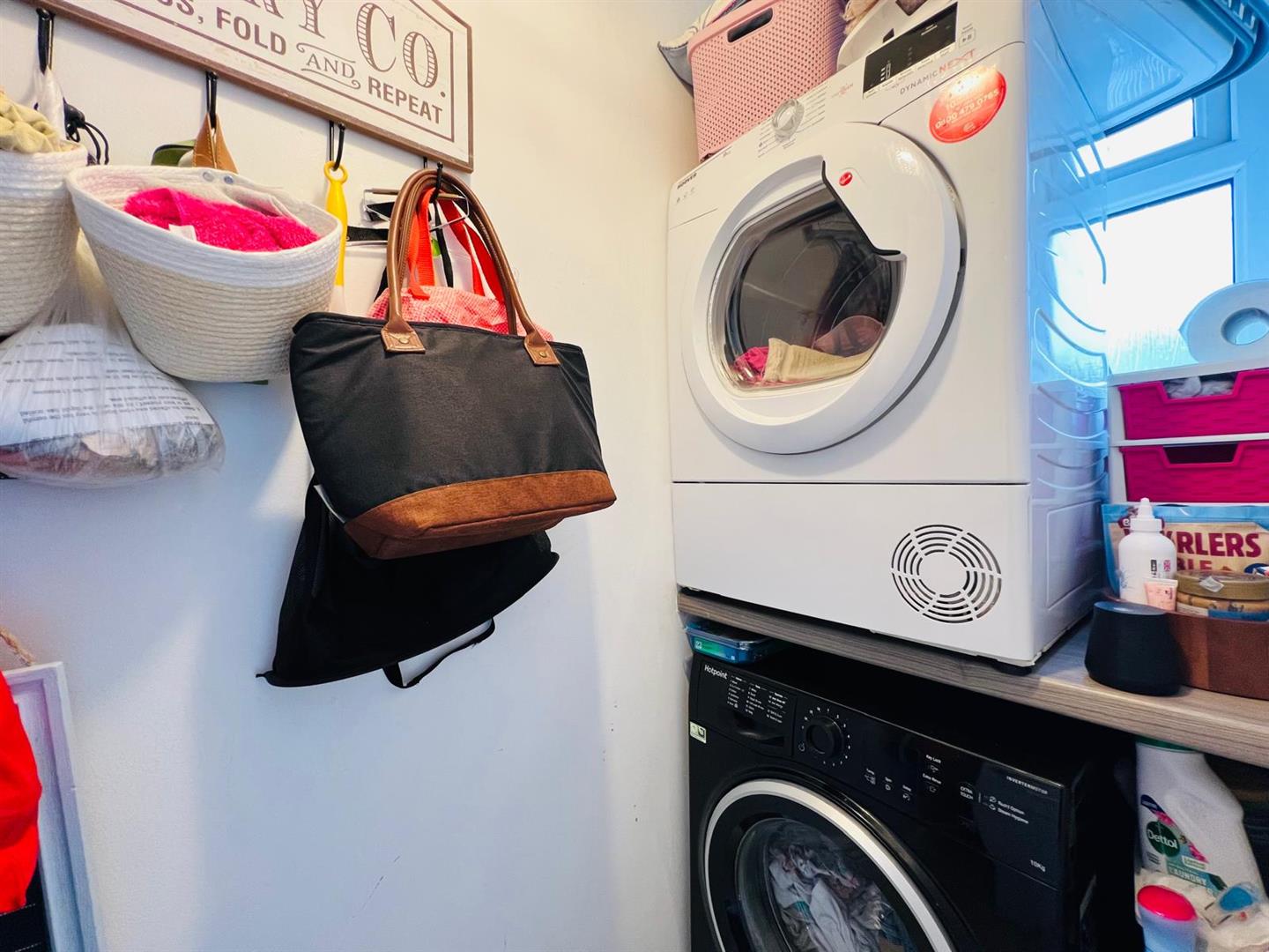 Plumbed for washing machine, space for tumble dryer, cloaks, tiled floor.