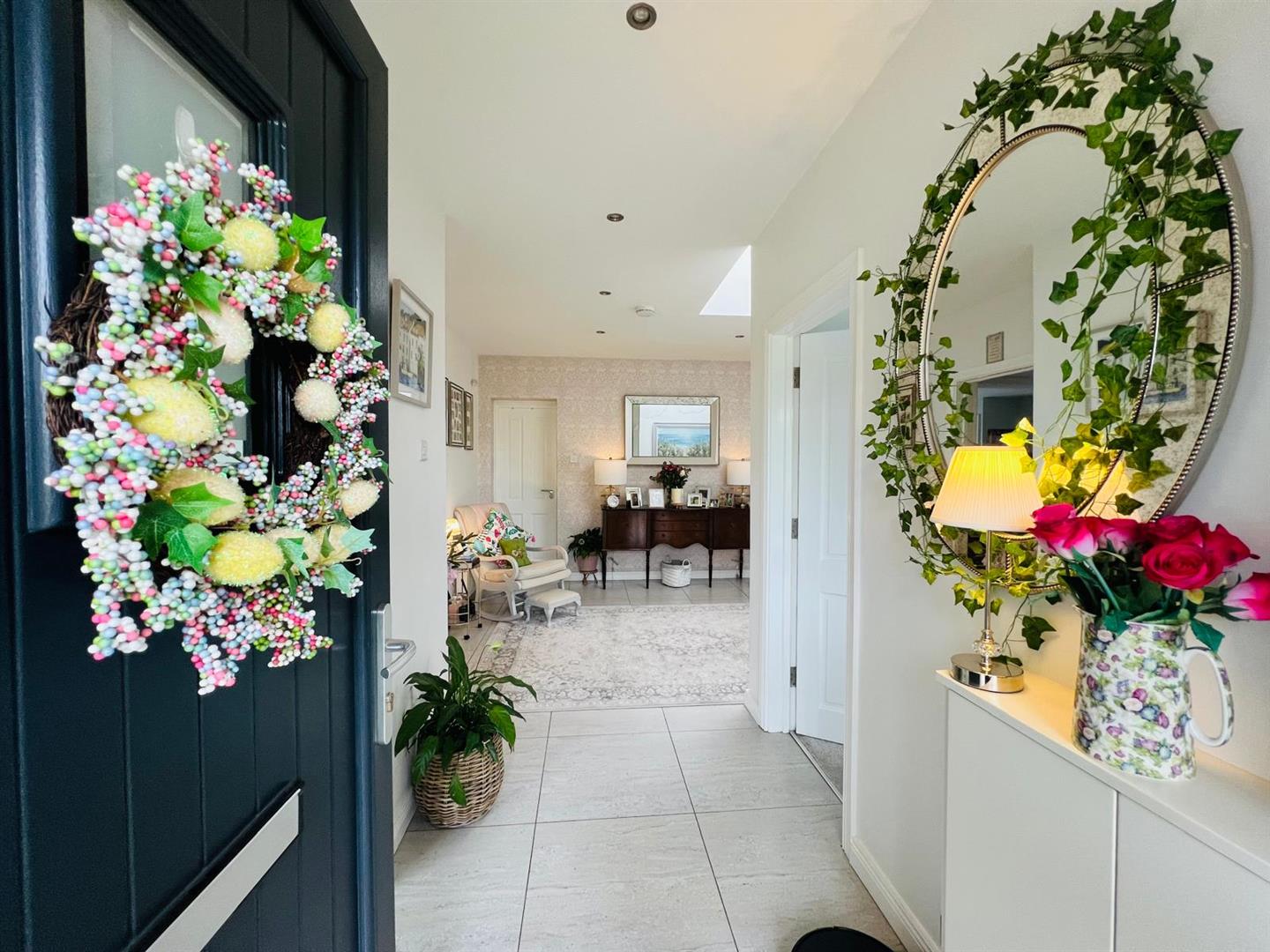It is tastefully decorated and neatly presented throughout. There are many features including pvc double glazing, gas fired central heating, modern kitchen and bathroom, excellent attic storage and much more. This home is further enhanced by the excellent outdoor space with extensive lawn to the front bordered by wall, tarmac driveway, good parking and yard to rear.
